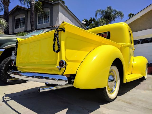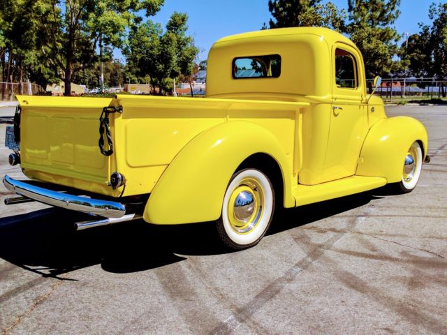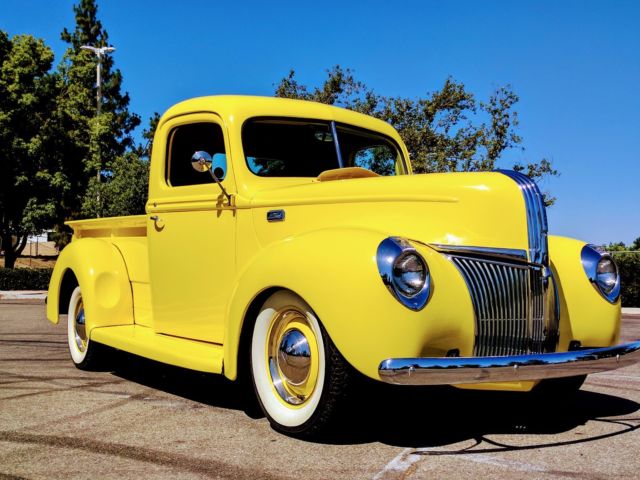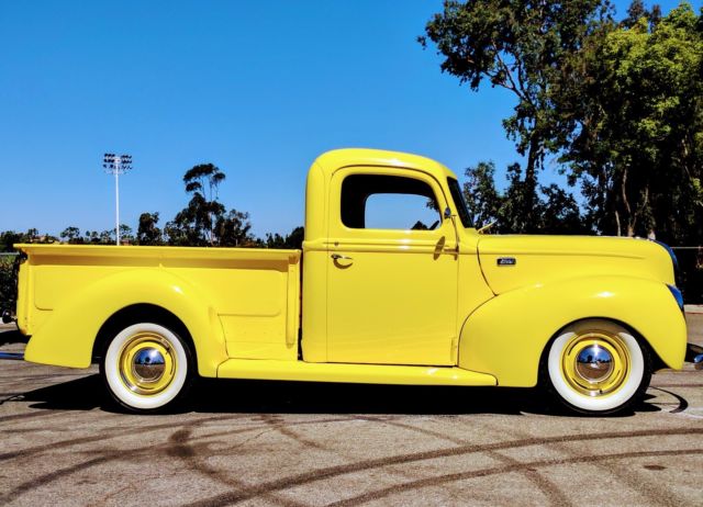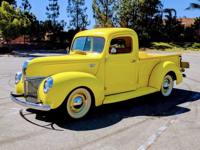 | This beautiful 1940 Ford Pickup was restored several years ago and now is ready for it's new owner. The flathead V8 purrs and runs great. The 3 on the tree transmission shifts smooth. The hydraulic brakes stop the vehicle safely with no pulling of locking up. Interior is clean with the exception of some stains from the passenger side floor mats. Carbs have been rebuilt and she is running good. No rust, only a few small paint flaws that are about 1/4" in diameter. |