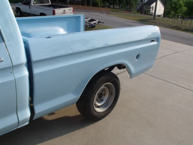 | 1973 ford f100 long bed. 390 big block and c6 trans truck has some rust issues that will need to be patched also will need rear glass replaced and i have a extra one for it. I had this posted before and it was not running. Since then i have ran a line from fuel pump into a fresh can of fuel and fired the engine up and it runs on it's own. at one point the truck was painted seat was redone as well as the headliner and door panels. inside is in really good shape. i bought the truck with no title but have all the info needed to get one and by the info given to me this seems to be a one owner truck. |