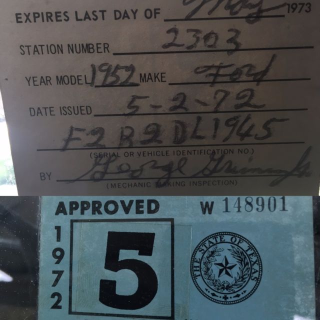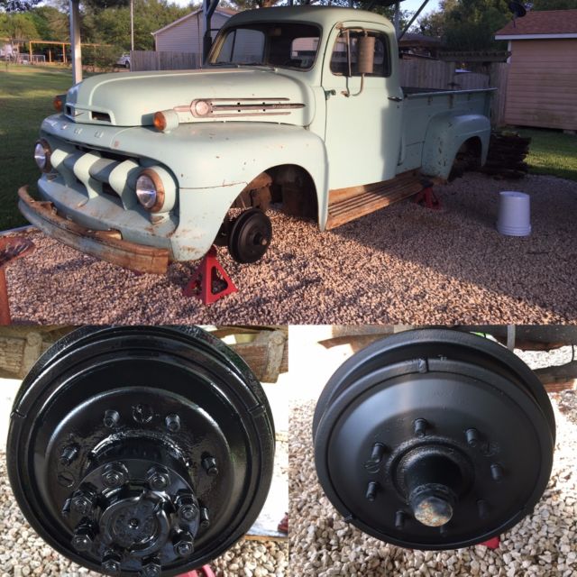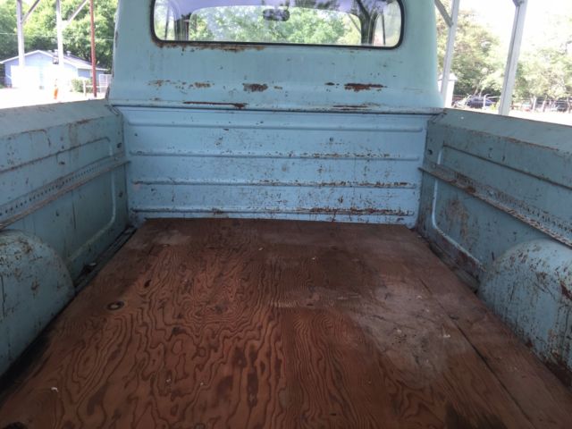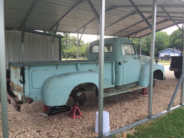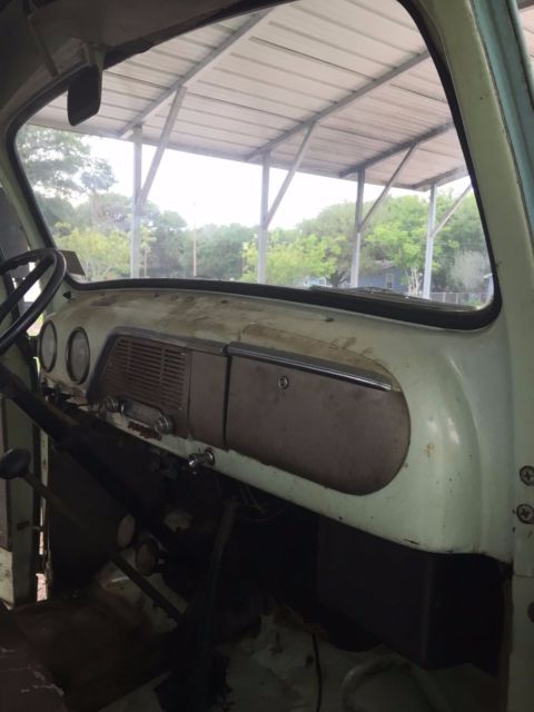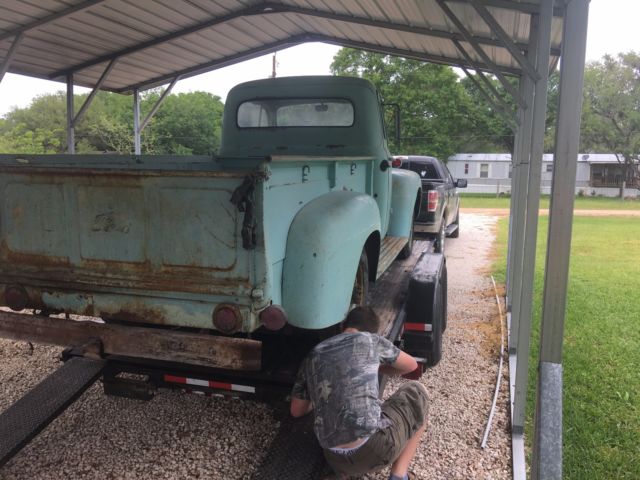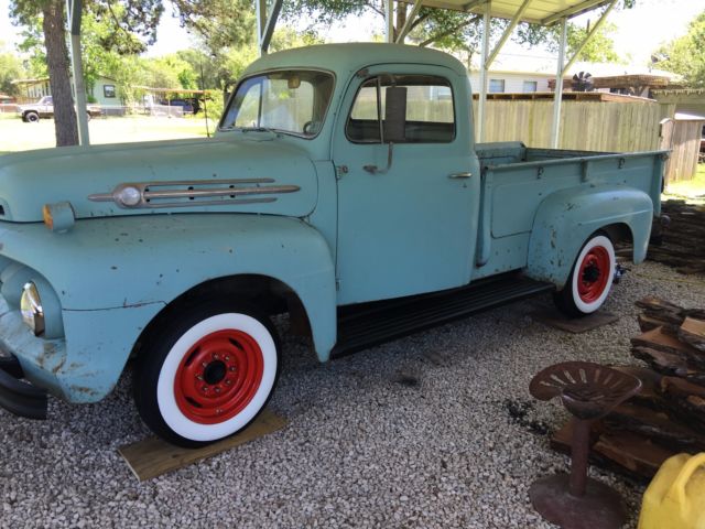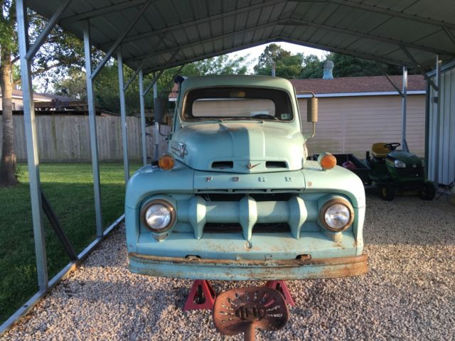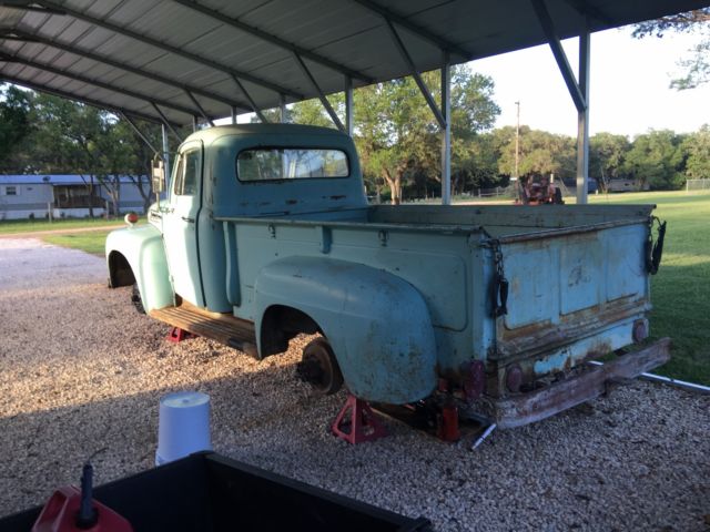Here is a 1952 Ford F2 3/4 ton all original truck. The truck has only 34,512 miles per the original owner. There is only a little surface rust on this truck, the Floor boards are is super great shape. There are only 3 small dings on this truck. Great patina. The truck was light green when built and the owners wife hated it and made him paint it baby blue. The engine compartment is still original color Everything is there on the truck. The motor does not run, we have not done any thing to it. These are the original 16.5 rims on the truck I had them blasted and painted red and I put 3 1/2 white wall bias tires on them. We cleaned the bumpers and running boards and sprayed the with black bed liner they look great. Pulled the seat out to look at the floor boards. I bought a new 6 volt battery for her and new radiator hoses, plugs wires and rotor cap. Most of the original wood is still in the bed, The owner parked the truck in his garage in 1972 and never moved it again until I found her, I had big plans but I just don't have the time and I hate to see her just sitting there. I have original 1952 Texas plates on her that are restored. The shape of this truck is unbelievable. Good luck bidding