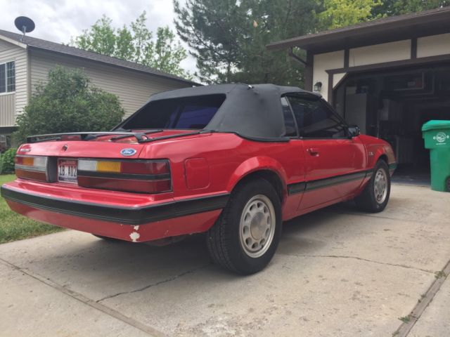 1986 V8 Mustang convertible! Although this car is not perfect it's a great platform, straight body with no rus, no major dents and no bondo . The only major exterior flaw is the missing door trim on the drivers side door . This has a 302 5.0 engine converted to an edelbrock carbureted setup with aluminum edelbrock intake manifold. The A/C compressor was removed during the conversion so this car has no A/C . I've added a 3000 cfm electric fan to keep it cool in traffic . The transmission is a C6 automatic with a newly installed B&M hammer shifter built specifically for fox body mustangs with a reverse and park lock out to prevent accidental shifts to park and reverse . It's a ratchet style shifter that can be put in drive to drive the car like a normal automatic or you can bang your own gears . It really makes this car fun to drive ! Fresh tune up with new plugs and wire, the oil and filter got replaced and compression in all 8 cylinders is between 115 and 125 PSI . New water pump and thermosta, new fuel filter and electric pump and the tires are In near new condition. The interior is in pretty good shape for a convertible, a little sun faded but no major tears in the upholstery, power windows and top all wor, the top will need replaced or repaired . The back window is broke and there is a tear on the top . Car runs and drives very nic, no rattles or clunks and it handles well . The tachometer works but it not accurat, also the speedometer is about 10mph off . Enjoy the summer sun and turn some heads while you're cruising the streets In this mean little car !