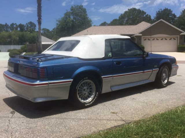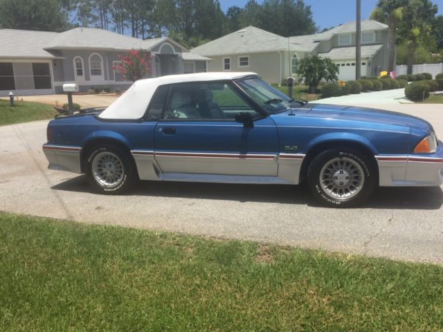 1989 Mustang GT Convertible,Fox body 5.0L V-8 fuel injected,43010 miles on clock, all original untouched other than maintenance and radio. No accidents.Very nice for an original car. This is a rust free car, that has always been in Florida, has great shine and shows very well. Ice cold A/C. Runs strong and drives great, shifts smoothly. Power convertible top along with power windows.This is a fun and affordable car with a low reserve. Please feel free to come and look at the car in person. Call me for additional information: 772-349-2768.
