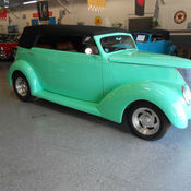 1937 Ford Hard Top Convertible. This is a unique one of a kind car. Lots of blood, sweat, and tears went into the building of this car. What makes it special is the interior. Lots of fabricating and molding went into it. It is done with limited upholstery. 85% of it is smooth meaning painted. No carpet. . The leather is cream colored done by Eddie Potestio of Eddie's Customs, of Pueblo Colorado. The exterior colors are marble beige metallic on bottom, and Samoa pearl on top. Then we put some custom pearls over the top to make these colors really pop. The Samoa pearl looks brown inside, outside in the sun it turns purple. The marble beige has a champagne look inside, outside it has a white silver look. The concept drawing was done by Eric Brockmeyer. The engine is an LS1. Transmission is a 4l60e. The frame, drive shaft, rear axle is powder coated the same color as the car. The under body of the car is painted and smooth. The car has equipment from these manufactures: Lokar (shifter, steering linkage), Billet Specialties (steering wheel, vents), Foose (wheels 20's in back 17's in front), Dakota Digital (gauge), Dunlop (tires), Electric Life (hood and trunk lift), Air Ride Tech (air ride), Wise Guys (seat frames), Wizard Fab (steering gear), Hot Rod Air (a/c,), Kenwood (navigation unit, backup camera, dvd player, sat radio), Heddman (headers), PPG paint and others. Asking $140,000 or best offer, serious inquiries only please. |