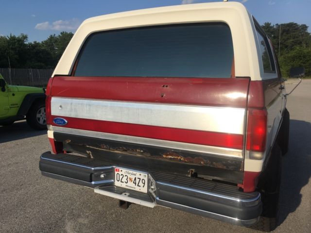 I am selling this Bronco for my son who has left to join active duty Air Force. He bought it with the intent to restore, but plans changed when he decided to join the military. This is the large body Bronco XLT and it has a great lift kit. My son has has done quite a bit of work on it to include: - New tires and alignment- New fuel tank, fuel pump, sending unit, fuel filter, and fuel pump- New rear brakes- New rear drums- New power steering lines He bought the truck with the lift kit and the new stereo already purchased, so I do not have the details on either. Have been told that it is a nice lift and that it was pricey. Other than the surface rust on the lower left and right (see pictures), I also know the right side door electric window motor is out and some of the dash board gauges don't work. Beyond that I think the car starts, runs, and drives well. We also have the original four wheels and tires in case you wanted to take the lift out and restore the Bronco to original. These trucks are becoming collectable and I believe you could easily double your money if you did just a little work. We will not ship the truck so it will need to be picked up in the Columbia, MD area. The car has a very clean CARFAX report. I can show you the CARFAX or you can run it yourself. Feel free to make arrangements to test drive or look it over. This is a old used car and there are no implied warranties. I have tried to list items that need to be fixed, but the buyer will need to verify all themselves since I am not the expert. The truck is also for sale locally. |