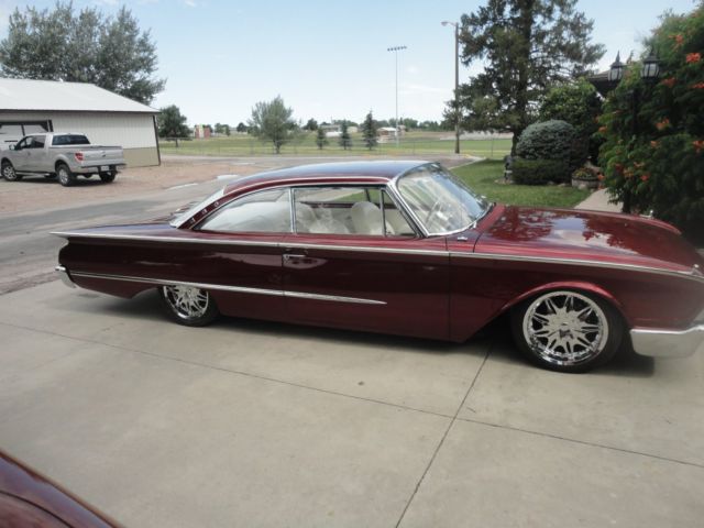 Frame off total restoration finished in 2005, mostof the work done byprofessionalshops in CA. I bought the car done but do have some pictures of the restoration. Just had to have it because my first car was one like this. now its time to sell down ( have sold 4 ).Have recitesforall of the work, everything new over $100,000 invested. frame power coated, new front end, brakes, brake lines, new drums back, disc front, power booster, rebuilt 390, auto trans, hooker headers, Edlebrock 410 4bl carb, polished aluminum manifold, MDS dist, wiring, new power steering, new exhaust, new wheels & tires, new gas tank / gas lines,Vintage AC heat front & back, highoutput radiator with 3 fans, Firestone air ride rear,Shockwave air front with dual air compressors and air tank and 4 wheel controller, Idiot tilt wheel, Custom Autosound AmFm CD with 10 CD player and Ipod connector, new glass, Halogen head lights, all new stainless and re chromed shaved bumpers, custom interiorwith leather seats, the paint is House of Colors, Candy Apple red & BrandyWine -several coats. I have not seen any flaws in the paint, there is a scratch from shipping below the right door, This is a true show car,the last owner drove very little mostly hauled to shows, won lots of shows, I prefer to drive them so made sure everything works, I think it hasabout 2000 mi since rebuild. It runs and drives very good, lots of power and shifts good, AC, lights, wipers stereo, andwindows all work. there is a full sized spare jack & tools, 2 air compressors air tank & 10 CD changer behind the trunk panels, handheld air ride controller in counselcan lowered or higher and can adjust any wheel for show. we drove it on a 500 mi cruse through the Black Hills / Badlands in SD last year winning a showalong the way .Great time and everything worked just fine. There is another 1960 Starlinersimilar to this oneon ebay for more than I would take for this- but this isn't cheap. Will respond to any real questions but not tire kickers or ridicules low offers. I do reserve the right to end the sale if I get a good offer. its a true show stopper.