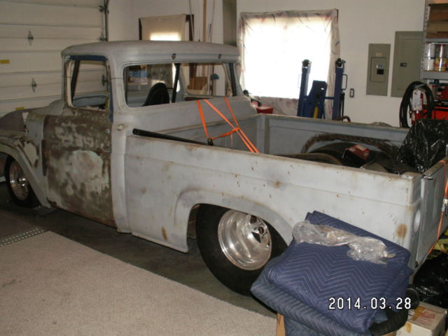 Have a 1958 Ford F-100 Short bed with the wrap around rear window. My goal was to make a show truck and to put a 820 CI Hemi Motor in it. This truck was sent to have Gephardt Pro cars to do the roll cageand some other work and when I got it back it was full of surface rust hear and there. This truck was all new going into his shop and this is what it looks like now. All of it can easily be removed. The body of the truck is now in primer since these pictures were taken. This truck is equipped with a Art Morrison racing 2X4 frame that was custom built just for this truck. It also has a IFS front suspension with Aldenadjustable coil overs on the front and back.The upper and lower control arms are made by Heidts. Has a 4 link adjustable rear suspension that was made by Chassis Engineering with thediagonal link bar. The axels are made by Moser. The wheels are Weld Drag lite with 15X15 on the back and 15X5 on the front, those are fitted with Mickey Thomason tires. The backs are 33X21.5X15, while the fronts are 7.5X15. The wheelie bars are made by Comp engineering. I have both doors and tail gate along with the original hood, and the front and back curved glass. Also comes with the original cluster gauges. I have over $15,000 in it as it sits. Truck frame still need a light sanding. All the parts are higher grade along with the framecoasting over $6,000 just by itself. For the right person, this would make a one of a kind at any car show or at the track. I do not accept any forms of a check, this is a cash only deal. It will need to be trailered. Also buying in, as is condition. I have a clear title that was signed by the owner before me, but not dated. You wont have any problems with getting it in your name. Please ask all questions before auction ends the day before. This will give me time to get back with you. I really don't want to sell, would rather finish it, but have medical bills to pay. Thanks for looking.