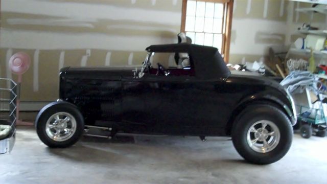 1932 NY. Registration, kilbourne body,chassis engineering components,boxed rails, C notched frame, chrome tube axle, suspension, leaf spring and 4 bars, coil overs, ford 8" 3.00 rear, Pete and jakes,3 piece rootlieb hood with Dan fink side opening kit, dales stainless grille, ez wiring, Dolphin white faced gauges, 16 gallon fuel tank in trunk, flaming river steering box, ultra-leather buckets, interior and trunk, aluminum radiator, American racing polished torque d's with big and little bf Goodrich, gm tilt steering 58 Impala 15" wheel (not shown in pic), 21/2" chopped ford chrome folding windshield, black hartz canvas rod top that folds or stores, AIR CONDITIONING AND HEAT, edelbrock, ceramic block hugger headers, spal fan, lots of polished aluminum and shiny chrome to compliment color sanded black/clear coat DuPont paint.