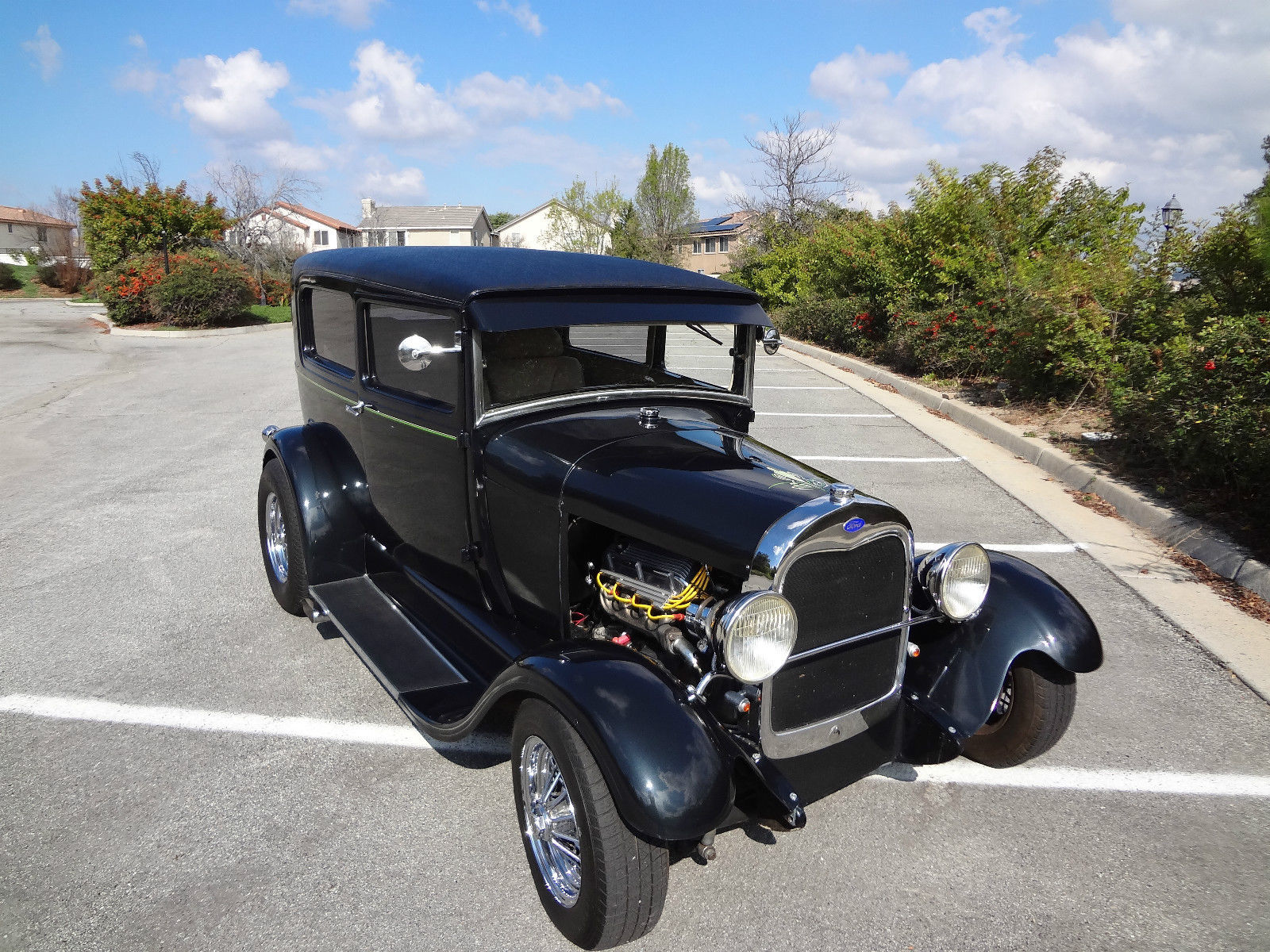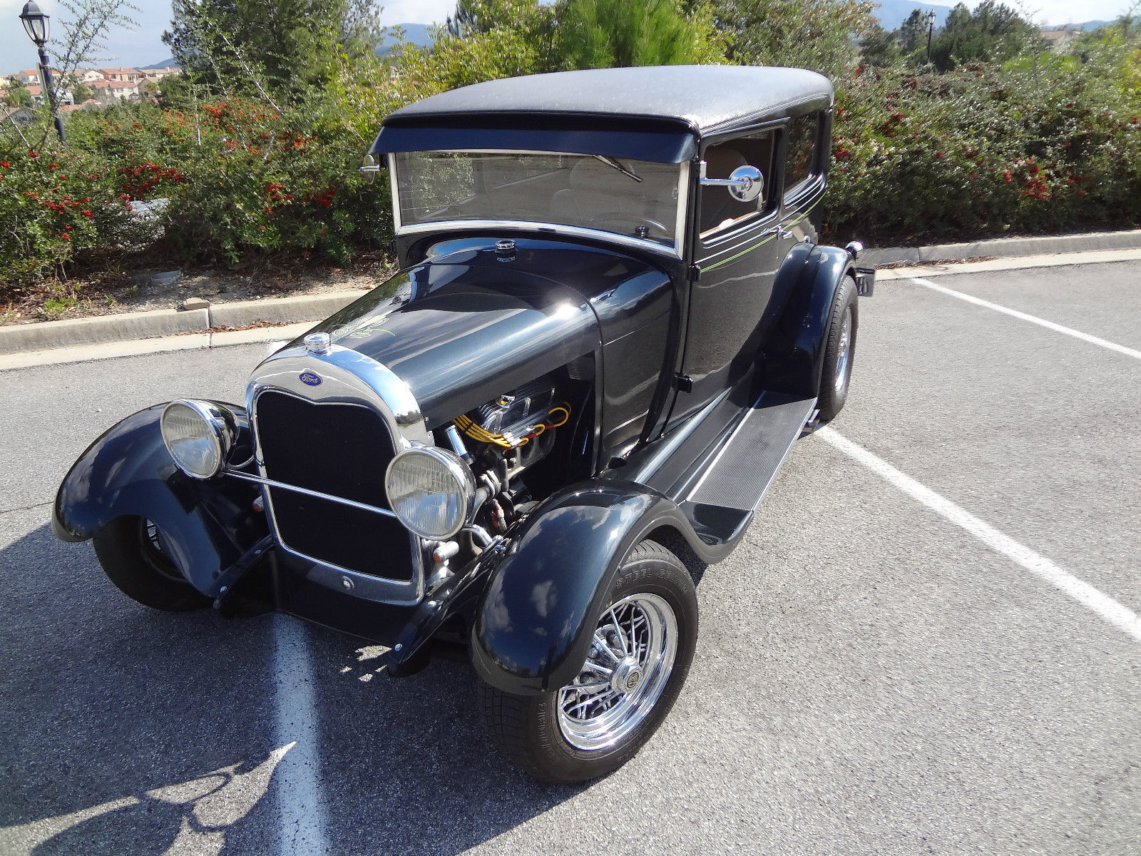 Hop in and go! What your bidding on is my early 90’s build of a all steel body authentic 29 Ford 2 Door Model A Coupe. Full custom with a stout 302 V8 and C4 3 Speed Automatic transmission. this 29 machine runs fantastic. it was built to drive. Driven this Custom all over Southern California on the I-15 Interstate at 80-mph without a hiccup with plenty of power to spare. The Interior is nicely appointed and comfy. CD player. Custom Gauges and Leather seats. Power windows. great value here. Check out all the details and specifications on this 29 Coupe and make your highest bid - this car will sell to the highest bidder. VIN is an actual 1929 Ford Model A #A967553 Ford 302 High Performance V8 4 BBL C4 3 Speed Automatic Transmission Custom Gauge Package Power Windows Full Custom Leather Interior 2 Inch Chopped Top Dual Mirrors Sun Visor Custom built in gages Removable Hood Disc breaks front. drum rear Custom Pin-Stripping by Mike True Spoke Chrome Wheels Custom Stereo AM/FM CD This 29 wasn't built to win awards as a show car. nbsp;rather it was built for the family to drive and enjoy. The car is reliable; looks great. with all the performance goodies. and plenty of custom work has went into this little beauty. The Exterior paint is a dark dark green Metallic; it almost appears black at first glance as the metallic finish is very subtle. It has custom pin stripping on hood rear and sides and the dash. The paint is driver quality. has some flaws when you get close. but very presentable. I get stopped all the time so people can look at it. and get looks wherever I go. Chrome and trim is in good shape with great shine. Interior is in good shape. some wear from over the years but all in all very presentable. back seat is roomy and in great shape. headliner has a matching design to match the door panels. power windows work well. The upper deck has a switch for running lights. dome light. and a CD player that works great. all functioning. The car can be inspected anytime just give me a call. I’m located in Temecula CA. Dave 310 270 6562 I am willing to trade for older Cadillac or Lincoln or Mustang. Camaro or other Hot Rod…? I reserve the right to end this listing at anytime should the car no longer be available for sale.