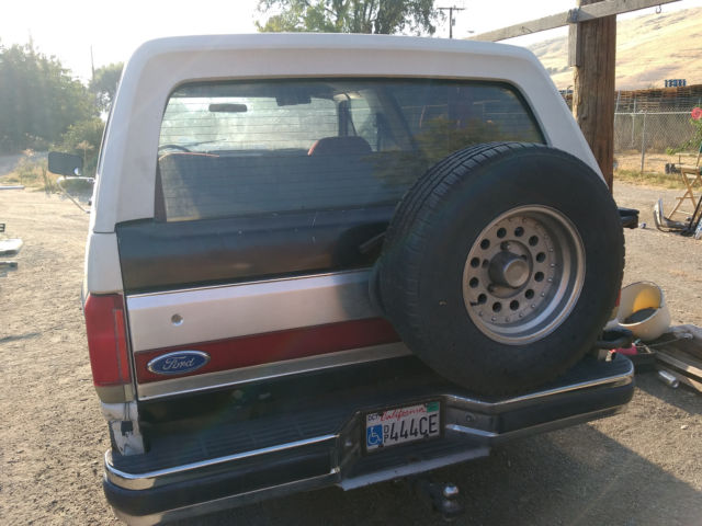 | 89 ford bronco rebuilt transmission motor has 35000 miles on it runs great needs some body work but not much interior needs some work . have a lot of body parts from other 89 bronco have used wire harness for das, replaced front harness every thing work, just made trip to L.A. ran great. |