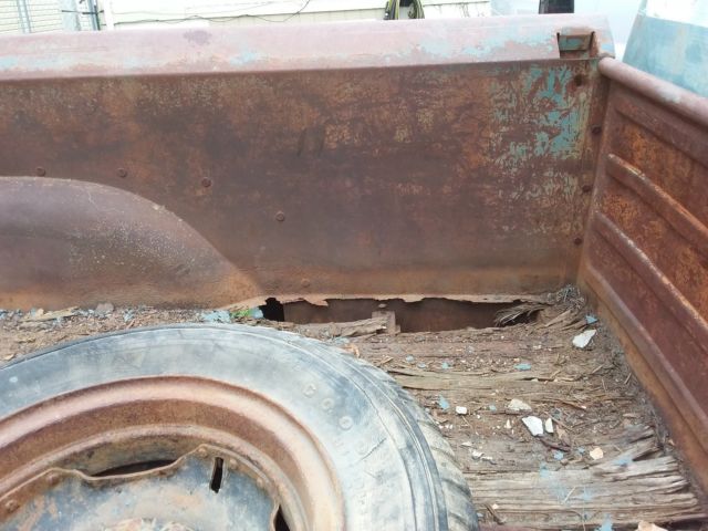 This is a 1953 F-250 stepside truck that has spent its life in Oregon. That to you means NO SALT NO RUST. The truck is very straight a few minor dents and dings for a 64 yr. old truck. Has original Flathead v-8 and 4- speed transmission which I think the synchronizers are out of it is because it was parked by the Ol' Man that owned it. I have all 4 original Hubs and one extra taillight to go with it. It does need restored, but this is a good solid truck to start with, to do what you want with it. Rat Rod, Hot Rod or Original. I do not have the time to work on this right now or the money because I have 2 more projects to finish first. I hate to let it go but I would like to see some one get it back on the road where it belongs. The front glass and rear glass are broken, but on the up side the side windows and vents are in tact. I also have the 5 original split rim tiresthat 4still hold airwill go with it. Previous owner took hood off the hinges are in the truck. The only rust through part is in the truck bed between the cab and rear fender, drivers side and on inside of truck bed as shown in pictures. It also appears to have dual tanks on it because there are 2 nozzle inlets one on both sides. The one on passenger side is up high like normal, the one on drivers side is down low, I have never seen this before, so if this is not the case of 2 gas tanks and some one knows what it is please let me know, I would appreciate it. I have described this vehicle to the best of my knowledge and reserve the right to end auction early do to it being listed locally! If you have any questions please feel free to contact me. The running boards are even very solid and just remember this truck is not running as of right now and will need probably gone through or at least that is what I would do.