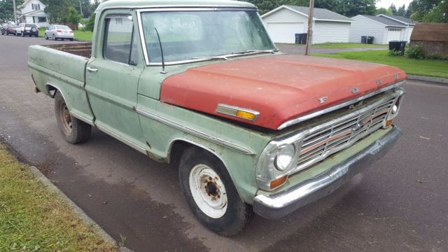 | I'm selling my 1969 Ford 3/4 ton short box pickup truck . The truck runs and drives pretty good . The exhaust is missing runs from the headers . No front brakes just rear . Tires are old . Windshield is cracked . There is a rust hole on the floor of the box up by the drivers side . And a small rust hole on the drivers side front fender . The truck is missing one hood hinge so the hood is just resting over the engine . The engine is a 390 I was told . There is no title but I can provide a bill of sale . The truck needs to be restore . The truck was a South Dakota truck . Any questions please call me at 218-269-7592 thanks . |