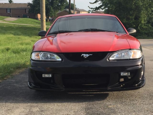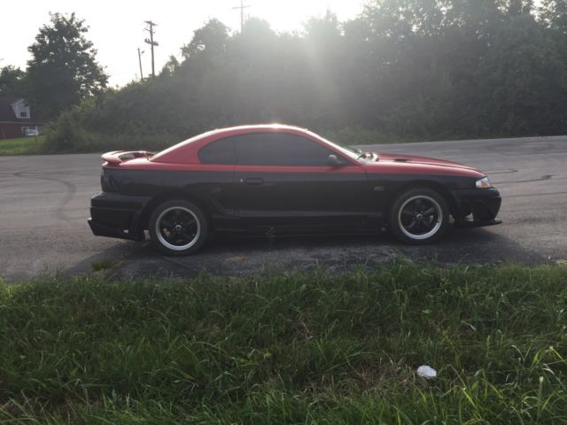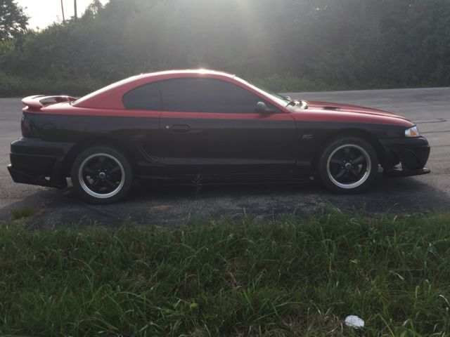 | 1994 Mustang Gt 5.0 with a 5 speed. Interior is in great condition. New digital gauges. Motor runs stron, drive it anywhere. Full body kit blended and flushed to the body to look like a factory install. 2 tone red over black paint with light charcoal pinstripe and custom pearl clear coat. Push button start, new CCRM, BBK headers, crossover and flowmaster exhaust & ac compressor. Too much to list ...just an awesome car!!! |