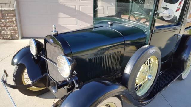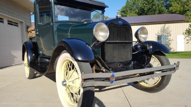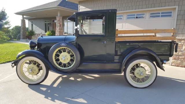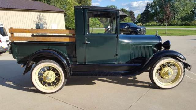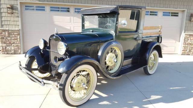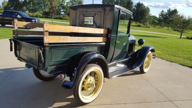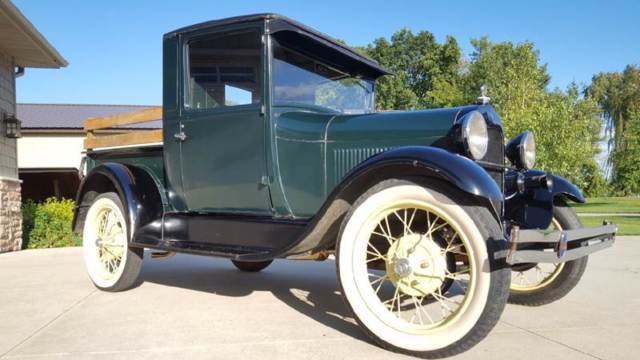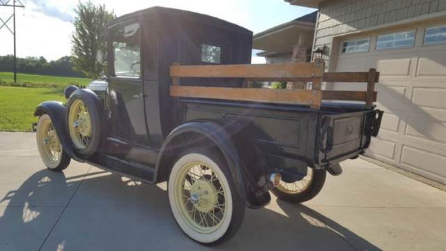| 1928 Ford Model A Pickup for sale. Older restoration and runs and drives good. Three of the four fenders are fiberglass but otherwise the truck is very original. Look through the pictures and watch the walk around video. |