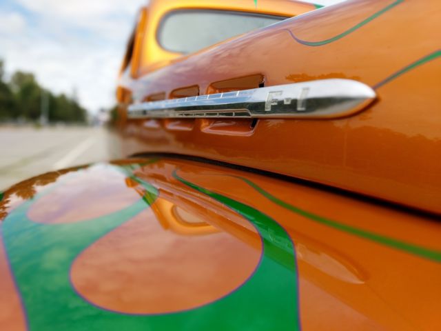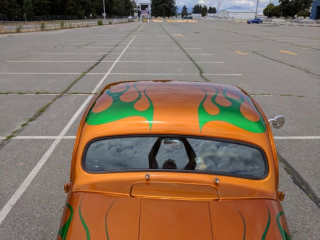 1951 F1. Completed August 2016. driven 2,000 trouble free miles since. Stored in heated shop. No leaks or drips. It drives as good as it looks. On S10 frame. 1998 Vortec 350 and 4L60 trans, Cruise control. Heated LEATHER seats. Frame and suspension is completely stock (not lowered) with the exception of bags out back. Has on board compressor and gauges. No issues. Fly in drive home. Fresh oil change. Original vacuum wipers work. All body panels are original to the truck with the exception of the tailgate, it is new. Working cowl vent.Chop is 7". Immobilizer with remote. House of color candy mango with house of color candy green flames. All stripping done by local Master Mitch. Dayton 100 spoke knock off wheels. (lead hammer included) All paperwork is in order. Currently has modified collector plates (tags) Will help arrange shipping. I'm 5 minutes North of the US border. Can deliver to Vancouver shipping terminal for overseas buyers. I welcome and encourage pre inspections. I will answer all questions promptly. If you have less than 10 positive feedback I will cancel your bid. Build video is available. Very reasonable reserve. I do have it advertised locally. Cash is king and will cancel the auction if I get a deposit from a local buyer. A $500 non refundable deposit required within 48 hours. The balance within 14 days. All prices are usd. |