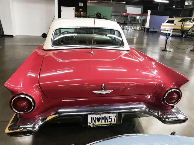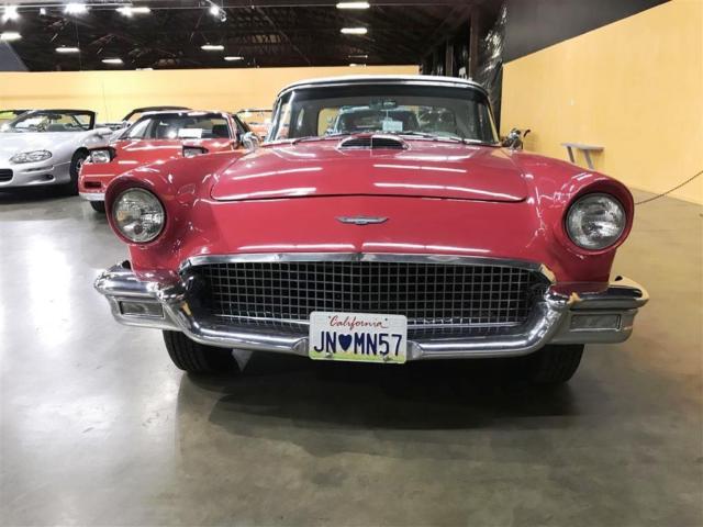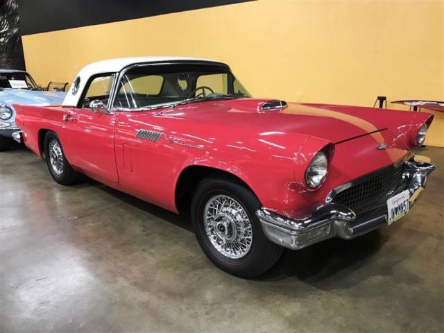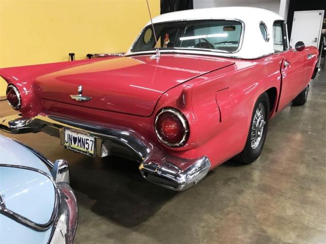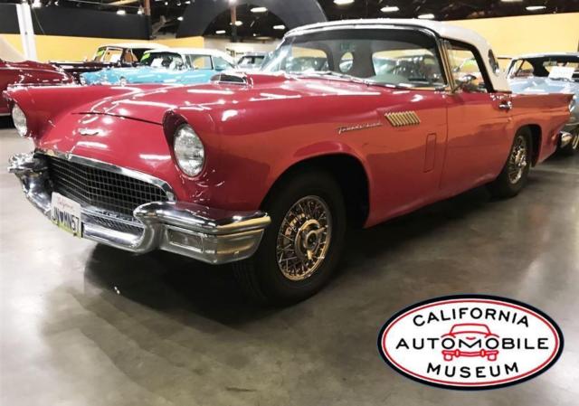 Offered For Sale by The California Automobile Museum 1957 Ford Thunderbird We Offer Financing It's Raspberry folks... Exterior: Car was repainted PPG Raspberry, presents well at a distance, flaws are visible up close. Porthole hardtop painted pearl white. Nice redline tires on wire wheels. Fender skirts are included. Doors are out of adjustment. Driver's window is disconnected. No dents or dings. Soft top is in very good condition. Interior: Beautiful original white interior. Vintage Air air-conditioning for cool cruising. Drive Train: Replacement 312 V8 rebuilt in 2007. Griffin radiator with electric fan. Brakes, front and rear suspension rebuilt in 2006. This car rides very nice. Get behind the wheel of one of the most iconic convertibles from the 50's.