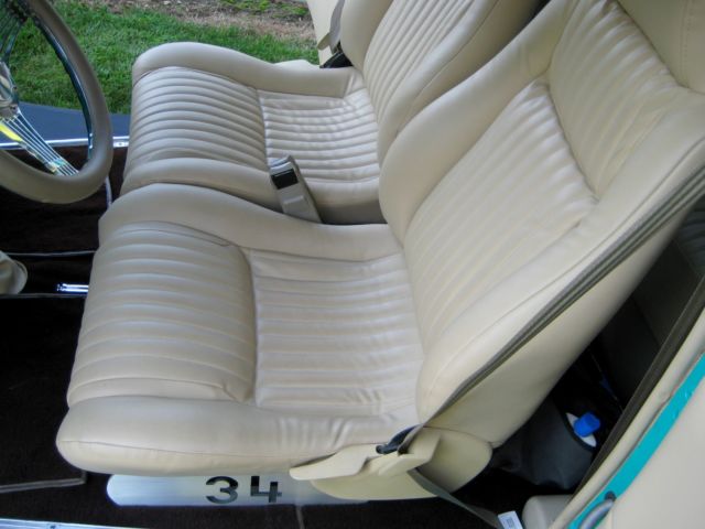 The body is Henry Ford Steel, front fenders are Glass with Star Fender liners. It has a Rootlieb 4 piece Steel louvered hood. The body is arrow straight with panel fit done to a high quality standard. Finished in a mirror-glass 2 Stage Dupont Chroma base/clear coat Jade with Custom Painted Graphics. The roof is Vega filled ribbed roof. Glass is excellent with light Bronze tint. Ultra Polished Aluminum Wheels with Radial tires. Custom Tri-Bar halogen headlights. Front Air Vent and Crank fold-out windshield are functional. Frenched antenna and hidden antenna. Chrome redone polished stainless trim. The Leatherette interior is new. It has all the creature comforts with Fiero reclining front bucket seats, Mazda 626 split fold down rear seat with storage area behind seat, three point seat belts, dual electric wipers with delay, chrome fire extinguisher, power door locks, power windows up front, operable crank rear windows, Overhead console with gauges, Sony AM/FM/CD/Mp3 player power steering, Chrome tilt steering column w/custom Polished Banjo steering wheel, air and heat with Billet controls, turn signals, tinted glass, Lokar Shifter w/Scull Knob and Emergency brake, 3 point seat belts, Classic Instruments Gauges Dash Speedo/Tach, Aux Pusher Fan, 3rd brake light led. Beautiful engine detailing under the hood see pix. The orig frame is straight has the stamped Ford vin number visible. The brake and fuel lines are replaced list goes on.