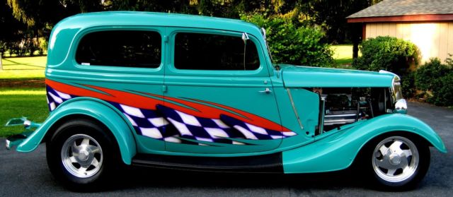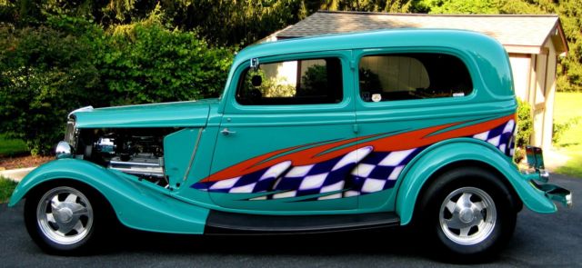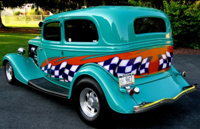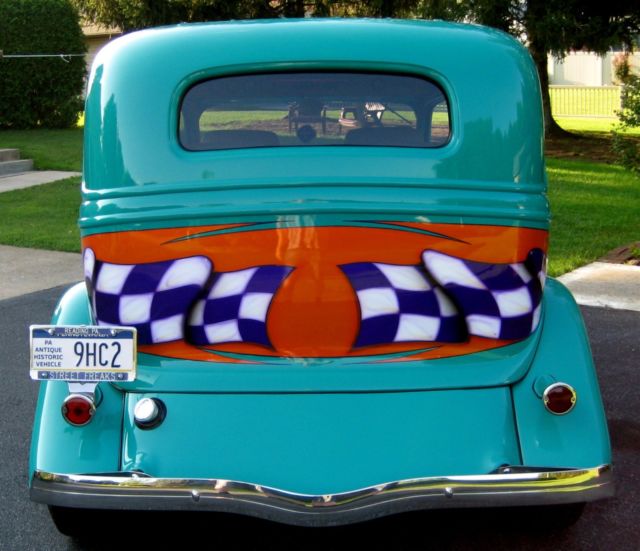 1934 Tudor Stunning Resto-Rod,Jade w/Graphics,350 V-8,Turbo 400,PS,Heidts,AC,Exc
