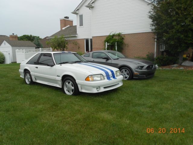 you are looking at a very nice 1992 Mustang GT, car is in pretty good shape overall with the exception of a few rock chips that is supper clean and very fun to drive these cars are becoming very hard to find this clean and not heavily modified or abused everything works door locks windows. has factory sunroof vehicle is a 5 speed and motor is very clean and has no leaks or issues has 50,000 original miles .... doors don't sag close very nice and lineup this fox body has not been abused never seen snow underbody is as clean as body no rust nowhere has black interior, Axial Chrome One-Piece Headlights, Axial replacement Clear Fog Light Glass Lens, Taillight Assembly LED Smoked Pair, BBK Cold Air Intakes a very mild cam and 2 AutoMeter Pillar Gauge Pods. The stripes are not painted and are a vinyl sticker car has tinted glass all door jams are clean and have ford stickers on it and all body parts fenders hood trunk hatch are all original from 1992 and have ford stickers on them.