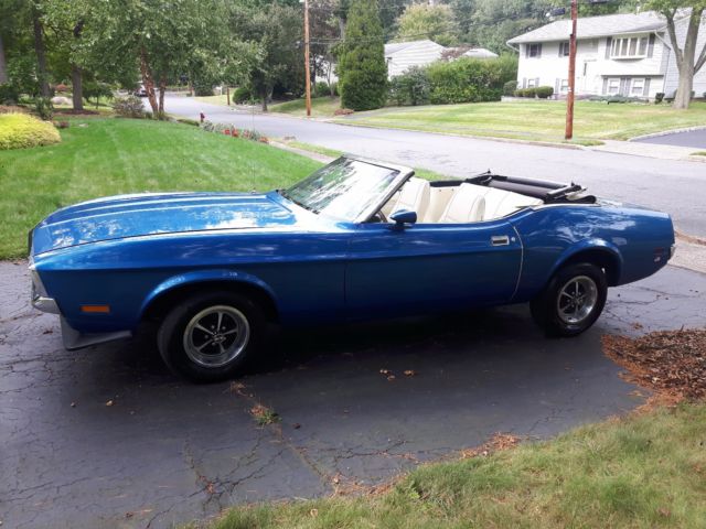 Fully mechanically restored and upgraded 1971 Ford Mustang Convertible. 302 V8 3 speed manual In lovely metallic blue with white roof This is a mechanically great, reliable and usable car that runs fantastically. I would happily drive this anywhere in the country! The car had been restored 15 years ago by the previous owner and garaged since. After I purchased it and before the trip to make sure it was reliable we replaced & uprated the following: