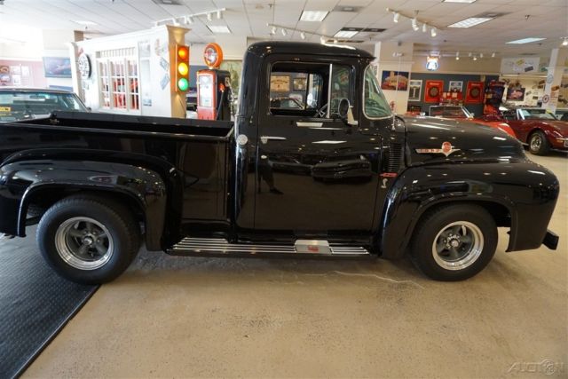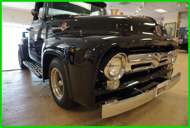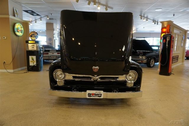 Don't miss your chance to own this beautiful 1956 Ford F-100! This trucks has gone through a no expense spared frame off restoration. With all brand new body panels beautiful deep gloss black paint. The bed of the truck is done in a combination of gloss black and Walnut wood with chrome strips and chrome tailgate latches. All of the body lines are super straight and fit nicely. The doors line up perfect. The truck has a front lift hood. Every emblem and trim piece on the truck is brand new! This truck features a nicely dressed up engine bay, The truck is powered by a freshly rebuilt 429 C.I engine with a freshly rebuilt C6 automatic transmission. The rear is a 3.08. This truck has a front clip, Power steering rack and pinion and power disc brakes from a Dodge Dakota. The truck has a full custom interior that has the look and feel of snake skin and a wide array of gauges! This truck is absolutely gorgeous and the photos do the truck no justice! This is a true MUST SEE truck. Should you require additional photos or videos please give us a call. BUY HAPPY WITH BROWN'S PERFORMANCE MOTORCARS Questions about our vehicles Contact Our Staff at Brown's Performance Motor Cars 410-553-6211 Only Tax, Tags and Processing not included. 410-553-6211 Only Tags, Taxes and Processing Fee additional to Brown's Price