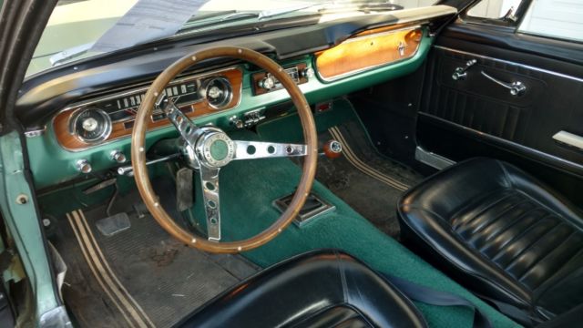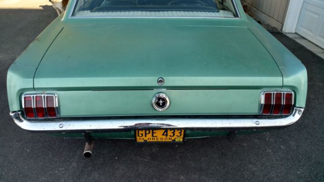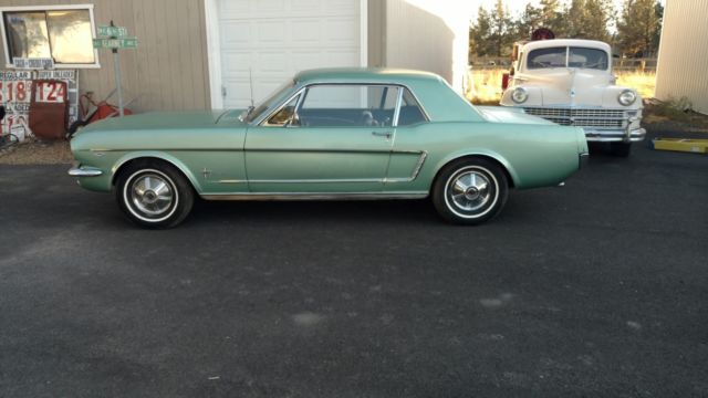 1964 1/2 MUSTANG COUPE, D CODE FACTORY 289 4 BARREL 4 SPEE, POWER STEERING, POWER BRAKES. ORIGINAL COLOR WAS RAVEN BLACK AND SOME SHOWS UNDER THE GREEN REPAINT. CAR WAS REDONE IN THE EARLY 1980S AND HAS BEEN SITTING IN A GARAGE SINCE 1986, I PURCHASED IT FROM THEFAMILY AND GOT IT ROAD WORTHY, ENGINE WAS REBUILT WHEN THE CAR WAS DONE AND IS PAINTED THE WRONG COLOR. IT RUNS WELL, NO SMOKE ETC. I DID THE FOLLOWING TO THE CAR, NEW FUEL TANK AND SENDING UNIT, NEW FUEL CAP, NEW FUEL PUMP, CARBURETOR REBUILT, ALL NEW WHEEL CYLINDERS, NEW MASTER CYLINDER, NEW FRONT BRAKES & DRUMS, NEW INSIDE DOOR HANDLES. OIL & FILTER CHANGE & LUBE. NEW COOLANT. UNDERHOOD LOOKS PRETTY ORIGINAL EXCEPT FOR THE HEADERS. ORIGINAL WASHER BAG IS THERE.HAS CORRECT 64 1/2 HOOD & LOWER FRAME MOUNTEDHORNS,GEN LIGHT & GENERATOR. TOP LOADER 4 SPEED SHIFTS PERFECT. I SEE NO LEAKS ON ANYTHING. POWER STEERING AND BRAKES WORK WELL. THIS IS A NICE DRY CAR, I ONLY FIND ONE SMALL RUSTSPOT ON THE LEFT REAR WHEEL OPENING.(SEE PIC) THATS IT. FLOOR, ROCKERS, LOWER QUARTERS AND FENDERSAND BOXES ARE TOTALLY RUST FREE, I PULLED THE CARPET AND SOUND DEADENER UP AND THERE IS SHINY ORIGINAL BLACK PAINT ON THE FLOORS. TRUNK AREA IS NICE WITH NO RUST OR COLISION DAMAGE SEEN. NEEDS NEW TIRES, PAINT HAS SOME BUBBLED AND MISSING PAINT SPOTS, SOME SHOW THE ORIGINAL BLACK UNDER. CAR NEEDS A REPAINT. INTERIOR IS NICE, SEATS, DOOR PANELSDASH PAD AND HEADLINER ARE ALL GOOD. THIS WOULD BE A VERY NICE EARLY MUSTANG WITH A REPAINT IN THE ORIGINAL BLACK. IF YOU HAVE QUESTIONS OR WOULD LIKE MORE IMAGES OR INFORMATION PLEASE MESSAGE OR CALL ME AT 541-419-4556 REASONABLE RESERVE. $500.00 DEPOSIT REQUIRED AFTER AUCTION CLOSE, PAYPAL OK FOR DEPOSIT ONLY. BALANCE DUE IN 7 DAYS BY CASH, CASHIERS CHECK OR BANK TRANSFER. THANK YOU. IF YOU HAVE LESS THAN 5 EBAY FEEDBACK PLEASE CALL OR MESSAGE BEFORE BIDDING. THANK YOU.