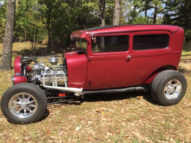 Tudor sedan steel body by Ford. Chopped 4" Channeled 1.5"- 4"mini tubs.Engine 350 chevy has a Trick Flow upper end kit- Alum. heads, cam and lifters, double roller timing chain, also roller rockers, Holley 650 mech secondary double pumper, Offenhauser intake manifold, Pertronic ing. Sanderson ceramic headers,Transmission GM 700R4 has a TCI constant pressure kit, Lokar tall shifter.Rear Ford 8.8" posi. 373 gear ratio, disk brakes with parking brakes, Coil over shocks, Alston ladder bars.New front I-beam suspension 4" drop and new 11" disk brakes.Dakota Digital gauges, CPP tilt steering column, Billet steering wheel, Vintage Air A/C,Walker radiator, Ron Francis wiring, PWS windshield wiper system, Feiro bucket seats/katskin, JVC/Sony, Alum. 15 gallon fuel cell.Rocket Wheels-15x5 front 15x8 rear,Mickey Thompson tires front 26x6.00x15 rear M/T 28x10x15"Runs cool, A/C cold,SOLD AS IS