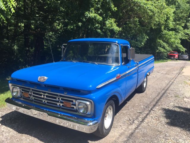 1964 Ford F100 long wheel base pickup. Original survivor truck. Not chopped up or modified.292 v8 Y-Block.4speed manual transmission, rear wheel driveSolid frame, no rust or rot. Cab rust free, floorboards original and solid. body panels straight, rust free. Bed straight and tailgate very good with a few dents.paint recent and shows well but needs rubbed out.small dents to hood and cab roof.chrome all there and with very few dents. new bumper front, rear bumper straight but chrome worn. tonneau cover in excellent condition, no tears Engine strong rummer, does not burn oil, small oil leak around pan seal, rebuilt carb, new tune up parts, new fuel pump.Starts right up, manual choke. New block hugger headers with dual pipes, good battery. Clutch rebuilt, engages smoothly with no grabbing or slip. little play in shifter but synchros mesh very well. New kingpins and tie rod ends, new front tires, rear tires at 75-80% tread. extra original wheels with truck. Manual steering, steers well, no shimmy, steering tight but manageable. Manual brakes,new brake lines wheel cylinders and shoes, stops well and straight with no pull. working hand brake. Interior looks great. New carpe, door panels, kick pads, ceiling panels and rear cab surrounds replaced with grey needle punch carpeting. seat without tears or worn areas. all rubber door seals and window seals and channels replaced. New armrests, visors, handles, cranks, and knobs. all gauges are operative but the fuel gauge is off about a 1/4 tank. turn signals, wiper, light, and blower all work with new cables and ducting added. seat lap belts. Great heater. All in all a very solid and dependable running truck.It would make an excellent candidate for a full restoration or use it as a daily driver. Some of the heavy mechanical work was done professionally but the bulk of the restoration I did myself or was started by the previous owner . I tried to get undercarriage pictures but I have difficulty getting under the truck and they didn't come out very well A little legalese if you please. No warranty expressed or implied. Sold as is, where is. Will help with loading the truck to your shipper, but will not deliver. Licensed, insured, clean PA title in hand. A $500 NON-REFUNDABLE deposit through Paypal is required at time of purchase. Please do not bid if you do not intend to buy the truck. Listing a vehicle is a big deal and a lot of work and I will not be forgiving. Almost forgot: windshield has area of delamination to upper driver side not in field of view. Also needs muffler to driver side. |