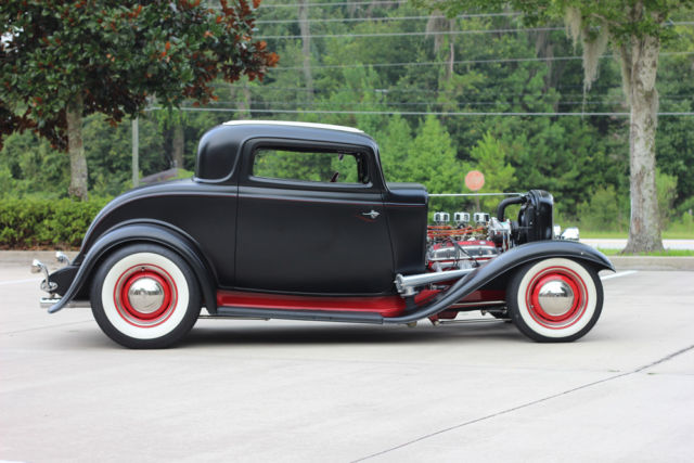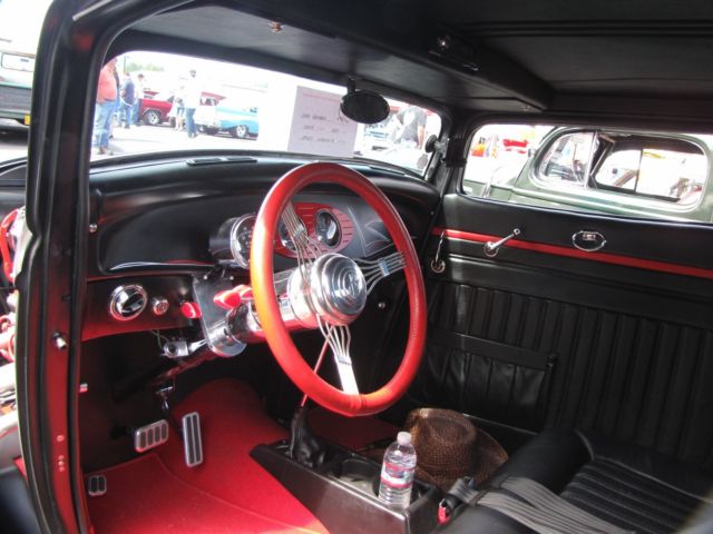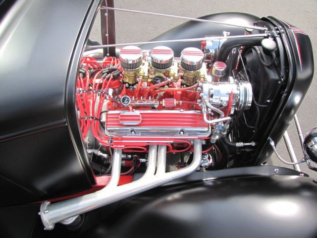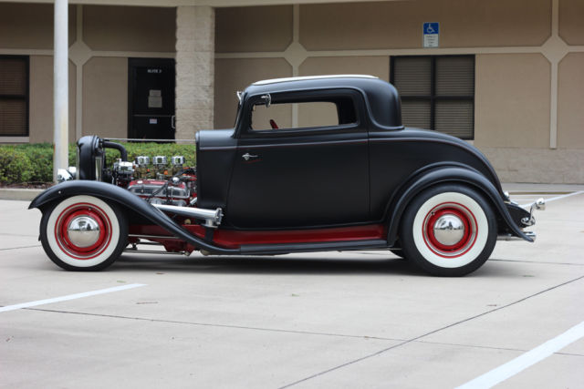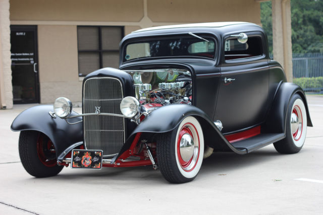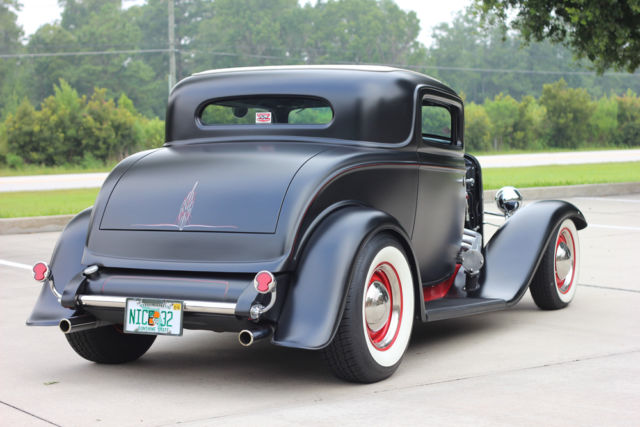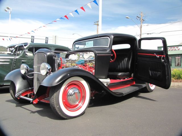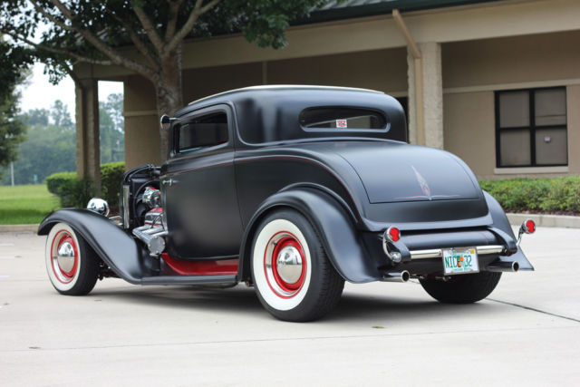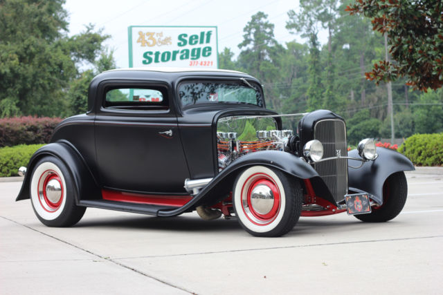 *350ci. Chevrolet small block, *Chevrolet TH350 automatic transmission with kit, *2500 stall converter, *Ford 9" rear-end with 3:08 gears, *Highly detailed, painted & polished TCI rolling-chassis with upgrades (as nice underneath as above), *Coil-over rear and 4" dropped axle/mono-leaf front suspension, *Sanderson ceramic-coated Lakester exhaust with Flowmaster mufflers, *Rochester tri-power setup with progressive linkage, custom fuel lines & block, *New Walker radiator and electric fan, *Rat's Glass body and fenders, *Rootleib steel one-piece hood top with 25 louvers, *New fuel tank by Tanks, *PPG black suede paint, *Imported European black leather interior, *Dolphin gauges, *Pioneer sound with remote and Alpine speakers, amp, & powered woofer, *A/C & Heat by Vintage Air, *Power windows with Retro-handles, *Power trunk system, *Glide seat and seat-belts, *Lokar shifter, *Chrome GM tilt-column with Grant banjo-style steering wheel, *New Coker Wide Whites on 15" Wheel Vintiques steelies, caps & beauty rings. *Photo album of the build included. *This car isexcellent conditionand ready to be comfortably and reliably driven anywhere. ****I would suggest anyone interested to compare this listing's price and quality-build to any 1932 Ford full-fendered coupeon the market**** *. * *. * On Oct-26-17 at 13:06:45 PDT, seller added the following information: *NOTICE "Buy-it-Now" pricejust reduced. It's now the same as the reserve price!!! |