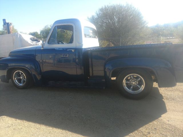 | 55 F100 Chevy 383 stroker, turbo 350 tran, 9" rear Rand, mustang front clip. 4 wheel disk, power steering, brakes, windows,seats Ac and heat. This was built to be a show quality driver. Would not question driving anywhere in this truck. |