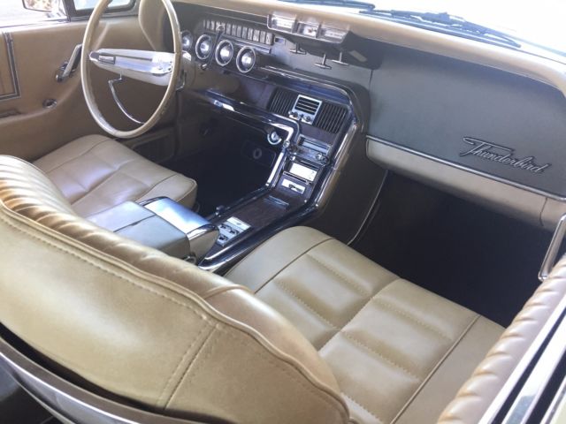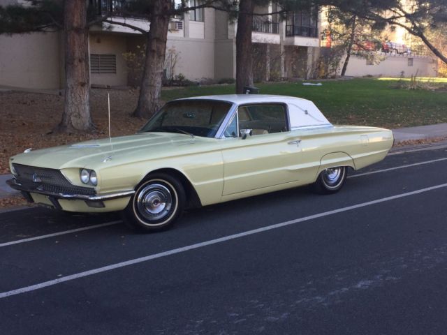 NO RESERVE AUCTION 1966 FORD THUNDERBIRD TOWN LANDAU "Q" CODE This clean solid American classic starts easily, it runs quiet and strong, shifts smooth, makes no funny noises, doesn't smoke, no leaks, travels straight with no pulls and stops effortlessly. All lights including the turn signal indicators on the fenders, gages, wipers, horn, cruise, windows, door locks, stereo/8 track and even the clock works. The heater blows strong and hot. The tire jack appears original and looks unused. There is a good spare and an extra matching wheel cover. You could drive this car anywhere with confidence. VIN- 6Y87Q108661 6- 1966 Y- Wixom 87- Town Landau Q- 428 C.I.D. - 8 Cylinder - 4V - 345 H.P. High Compression *108661- Production Sequence*This highly optioned Town Landau was ordered on September 23rd, 1965 as a Demo Model for the showroom floor of a dealership in Grand Junction Colorado two days before the introduction date. The 1966 Thunderbirds were introduced to the public on September 25th, 1965. It was delivered to Denver, Colorado, and was received by Western Slope Auto Company in Grand Junction on October 21, 1965. This Classic Thunderbird is among the very earliest 1966 production models.DATA PLATE: Body-*63D (Town Landau) * Town Landau is a New One-Year-Only Model Color-*L (Honeydew Yellow) * Rare Color Trim-*K8 (Parchment with Gold) *All Leather Date-*23J (September 23rd) * Pre-Introduction order date D.S.O. 51 (District Code Denver) Axle-*11 (3.00:1)*This code was used only until October 18th, 1965 Trans-4 (C6 Dual Range 3 Speed Automatic) OPTIONS AND DETAILS · TOWN LANDAU · TWO TONE COLOR · HONEYDEW YELLOW · 428 CID 345 HP- 4V THUNDERBIRD 7 LITRE · TRANSISTORIZED IGNITION SYSTEM · DUAL EXHAUST SYSTEM WITH RESONATORS · 6-WAY POWER SEAT (DRIVERS) · RECLINING PASSENGER SEAT & HEADREST · LEATHER SEAT UPHOLSTRY · SEAT BELTS FRONT AND REAR · HIGHWAY PILOT CONTROL (Cruise Control) · UNIQUE STEERING WHEEL (Moves 8 Inches Right for Easy Exit) · SAFETY / CONVENIENCE CONTROL PANEL (Everything Works) · POWER WINDOWS · DECK LID RELEASE · SELECTAIRE CONDITIONER (Needs R-12) · AM RADIO / STEREO-SONIC 8 TRACK TAPE SYSTEM (Works) · TWO SPEAKERS EACH DOOR · TINTED GLASS · WHEEL COVERS & SHEILDS (Skirts) · 815X15 4PR WSW TIRES · FOMOCO TRAILER HITCH · SEQUENTIAL TAIL LIGHTS MORE INFO · COMPLETELY REBUILT TRANSMISSION (Has Original Factory Tag) · REPLACED FORD 9 INCH REAR END (Per 428 CID Specifications) · REMANUFACTURED ORIGINAL FORD FACTORY 9510 CARBURETOR (Has Original Factory Tag) · REPLACED VALVE SPRING BAFFLES · NEW GAS TANK · NEW GAS TANK SENDER W/LOW FUEL WARNING LIGHT · REPLACED ALL FUEL LINES AND IN-LINE GAS FILTERS · REPLACED PLUGS / WIRES -IGNITION POINTS - CONDENSER · SET IGNITION TIMING · TEST VACUUM ADVANCE · NEW VACUUM CONNECT AND TUBE · REPLACED ALTERNATOR · REPLACED FUEL PUMP · REPLACED BATTERY · REPLACED BATTERY TRAY · REPLACED STARTER SOLENOID · REPLACED FAST IDLE CAM LEVER · REPLACED CRANKCASE VENT HOSE · DRAINED & REPLACED ALL FLUIDS · REPLACED ASSORTED RUBBER & HYDRAULIC HOSES · REPLACED OIL PAN GASKET · REPLACED REAR BRAKE SHOES & ALL HARDWARE · MACHINED OR REPLACED REAR BRAKE DRUMS AS NEEDED · REPLACED REAR WHEEL CYLINDERS · REPLACED BRAKE HOSES · BLED BRAKE SYSTEM · REPLACED INNER TIE RODS · NEW STRUT ROD BUSHING KIT · NEW SWAY BAR END LINK KIT · REPLACED ALL EXTERIOR LIGHT BULBS · REPLACED TIRES - 99.9% TREAD LEFT · NEW WINDOW SWITCHES · NEW DOOR SEALS · NEW TRUNK LID WEATHER STRIP · RE-FOAMED AND UPHOLSTERED FRONT BUCKETS · FACTORY CORRECT COMPLETE TRUNK LINER · REPLACED FENDER SKIRT PINS AND SEALS · NEW TURN SIGNAL SEQUENCER · NEW HEATER CONTROL VALVE · REPLACED HOOD PADS · NEW ROOF RAIL SEALS ·NEW CHROME SUN VISOR ARM & BRACKET ASSEMBLIES · ORIGINAL OWNERS MANUAL W/ORIGINAL OWNERS INFO · SERVICE MANUAL AND PARTS CATALOGS · NEW CAR COVER AND STORAGE BAG This 52-year-old survivor, is not a trailer queen and it's not perfect. It is however, a VERY EARLY PRODUCTION "Q" CODE NUMBERS MATCHING 1966 Thunderbird. It has huge potential, and will require little to take it to the next level. The door panels near the finger cups are starting to crack, the headliner is starting to sag. There is one small crack in the dash pad and there is a minor power steering leak from either a hose or the pump itself. Again, it is minor. The windshield has a chip on the passenger side in the line of sight and the rear-view mirror needs to be re-positioned. The window glass is excellent as is the rear glass. The chrome bumpers and stainless are in excellent condition and present very well. **WHAT MAKES A CLASSIC A COLLECTIBLE AMONG COLLECTORS? IT'S REALLY VERY SIMPLE. IF THE CAR IS THE "FIRST" OF,OR A "LAST" OF, IT'S A MUST HAVE**. The 1966Jet Birdwas the LAST YEAR of production for the Iconic ClassicJet AgeThunderbird Styling. Once inside you'll notice the cockpit is aJet Agefantasy environment with itsFlight-Deckinstrument panel incorporating floating-sphere instruments and aircraft thrust-control style levers to control minor functions. The first-class section was furnished with thin-shell bucket seats while passengers in the rear cabin were treated to unique wrap-around curved banquettes evoking a cocktail lounge. It was THE FIRST year for the Town Landau styling and this version is a One-Year-Only model. The 1966 modelwas THE FIRST U.S. car to feature windows-up flow-through ventilation; the air extractors are in a full-width grille beneath the rear window. The 1966 is THE FIRST year the larger 428-cubic-inch (7.0 L) V-8 became optional, rated at 345 gross horsepower and providing a notable improvement in power and American Muscle performance. It was THE FIRST year for the full width one-piece sequential tail lights. MORE FUN FACTS All 1966 models featured a NEW front clip. A flatter hood, re-shaped front fenders, NEW headlight buckets, NEW egg crate grille with large Thunderbird emblem, NEW bumper guards, a single bumper bar, and p