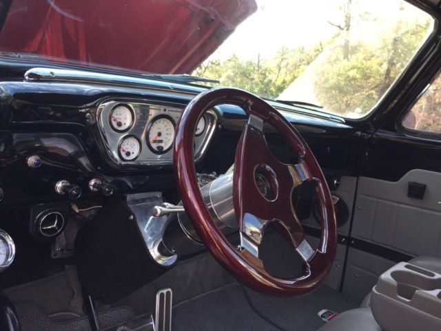 This trophy-winning F-100 is a frame off restoration approx ten years ago. So Cal truck. No rust. All original sheet metal. Gorgeous PPG Carnival red base/clear coat show quality paint (9.5/10) has a few pinhead bubbles no chips or cracks. Show quality pin stripping. Magnesium step plates. Bazooka Sub-woofer, All leather interior (grey) with button tuck and roll headliner (black). Grey door panels. Excellent carpet and badged mats. Seat belts. VDO gauges with. tach. AM/FM CD stereo.Flaming River tilt steering column with new box and U-loint. Chrome show quality all around bumpers, grill, bezels, handles and rear tailgate hardware. Great body panel fit. Oak and stainless bed. 302 HTK HP (5/0L) crate engine (approx 325 hp). Dual ram air induction. Headers. New plug wires. Recently new battery. Electronic ignition and box. Dual dump oil system. Detailed engine compartment. No overheating issues. Recently changed plugs and oil change. C-4 tranny with auto kickdown. 3:50 gears in ford 9-inch. New 2 1/2 inch exhaust and large chrome tips. Driveline, U-joints, bearings/bushings great condition.Thrush mufflers. Front discs on Volare front clip. Recently new shocks. Drum rears. Chrome US Wheel rims. New Radial Goodyear Cobras p225 70R 14s. Power steering. Power brakes. Power windows. Vintage Air. Heat. Rear tilt hydraulic hood with support. 3rd brake light. Clean detailed undercarriage. This truck has everything and needs nothing. Shows excellently and turns heads everywhere. Great and fun drivability keeping in mind this is a 70 year old truck and rides like it should. Gorgeous all around and bodywork is exceptional. Driven almost daily not a trailer queen.You won't be disappointed. Clear CA title, registration good thru 2018. *Buy it now price includes seller paid shipping anywhere in US (except Alaska and Hawaii). |