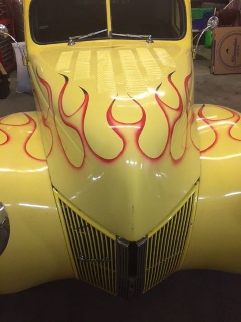1940 Ford Coupe Hot Rod Muscle Classic, 2 door. Has Mustang II racing front end, 302 Engine, 3 speed automatic, car runs and rides good. Car has heat and is set up for AC. NO rust, undercarriage clean! Paint is near perfect, Canary Yellow with custom painted Red Flames, a real head turner. Interior is soft cloth brown. Car has been stored inside garage. Comes with new wiring harness. NOTE: If vehicle is being shipped, all costs and transportation arrangementsare entirely buyer's responsibility. |