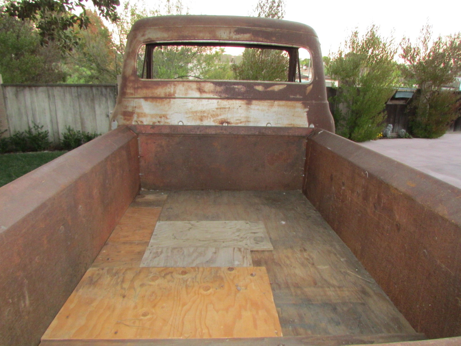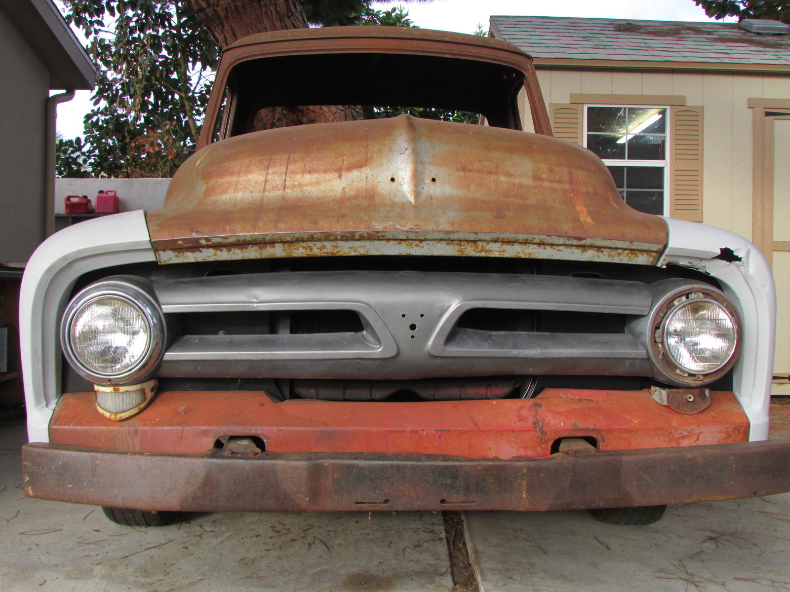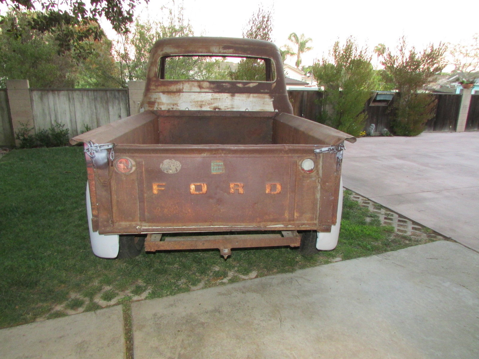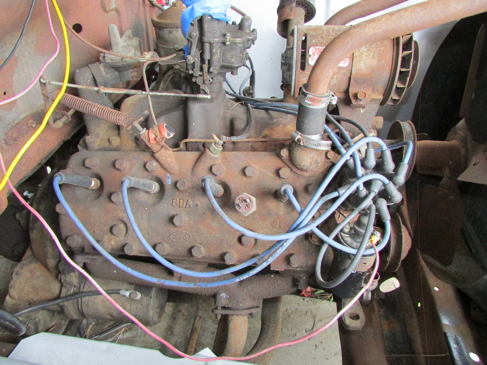 | This 60 year old farm truck is an outstanding project truck and is amazingly straight and rust free. There is surface rust and some repairable “rust through” in the usual places. Door pillars have surface rust only. We started the flathead engine before we bought the truck in 2012 (ran and sounded okay). The truck is very complete and original. Miscellaneous extra F-100 parts. including seat frame (less slider tracks). and manuals included. Work completed includes:- All front-end body parts. running boards and rear fenders were removed (big job… those awkwardly located nuts and bolts that had been there for 60 years were a challenge). - Fenders (front. front inner & rear) were chemically stripped and primed (years of dirt. rust. paint & bondo gone!). - Radiator mount. left & right front air deflector panels and upper radiator valance stripped and powder coated matte black (they look great). - All new front body attaching hardware (fenders. valances. etc. ). - Body parts have been refitted for initial alignment and checking. Fit and alignment is better than expected! Truck cannot be driven. The tires are solid and it rolls easily. it will have to be winched onto vehicle transporter. This truck is very complete but some body parts are missing… review pictures and. if you don’t see it. assume the part is missing. Contact us for more details and pictures |