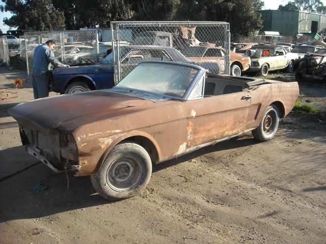 This is a 66 Convertible, that is rusty, but with proper restoration will become a beautiful Mustang once again. The body is fairly complete, but is missing details such as bumpers and headlights which you would probably want to be new anyway. The interior has its seats and steering wheel, but is missing details like door panels, again you will probably want new. The instrument panel was missing when we took pictures but we will provide an instrument panel. This car will need some serious rust repair, but if you are up to the challenge, you will have a great project. BODY: Please see the pictures showing the car from the rear and from underneath. You will need inner rocker channels and floors for sure. There is some rust along the edge of the hood, and along the edge of the trunk, but easily fixable. INTERIOR: The interior will need to be restored, but we can help you with ordering any thing you need. GREAT PACKAGE: We estimate that in a fully restored condition, this Mustang would easily be worth a minimum of $25,000. If you add a few of your own ideas, when you are finished, you will truly have a unique classic Mustang. The car comes with a clear title, but is not currently registered. Feel Free to visit us at MustangBeginnings for more pictures of the car, or CALL ME ABOUT THE MUSTANG, I WILL BE HAPPY TO ANSWER ANY QUESTIONS YOU MAY HAVE, 831 594 2204 LEAVE MESSAGE I WILL CALL YOU BACK Terms and Conditions Please do not bid on this auction unless you are a serious buyer. DO NOT BID UNLESS YOU INTEND TO PAY!!!! This is NOT a child's game, by bidding on this vehicle, YOU ARE ENTERING INTO A LAWFULLY BINDING CONTRACT, so please, serious bidders only. No bid retractions please, if you are unsure do not bid. If you are the high bidder when the auction ends you are the new owner. Ask all questions before bidding. I AM SELLING THIS CAR "AS IS", WITH NO EXPRESSES OR IMPLIED WARRANTIES OR RESPONSIBILITY FOR REPAIR ONCE THE CAR HAS BEEN PURCHASED. Seller reserves the right to end this auction early for any reason! All inspections must be completed before the end of the auction, otherwise it is assumed the item is to be accepted without an inspection. We will make every reasonable effort to describe the vehicle, and we include many photos to assist in that effort. However, it is important to remember that these vehicles are pre-owned, not brand new. Therefore, not mentioning every minor imperfection, a light not working, etc. does NOT allow for refusal of a car. Please keep this in mind when bidding on used cars. Once again please remember by bidding on this vehicle, YOU ARE ENTERING INTO A LAWFULLY BINDING CONTRACT, so please, make certain and ask any and all questions before you place your bid! Please feel free to contact me for any questions. If you purchase the vehicle without inspecting it first, then you must leave feedback on EBay before I will release it to you or the shipper. I have a great reputation and I will protect it. Any inspections must be done before end of sale, not afterwards. Don't expect to show up at my door with money in hand and want to inspect the car before making the transaction complete. Once the auction has ended, the deposit must be received before any further information will be provided. If you fail to comply with any of these requirements without prior written approval (not oral) then you will forfeit either you deposit, the right to purchase the vehicle, or both |