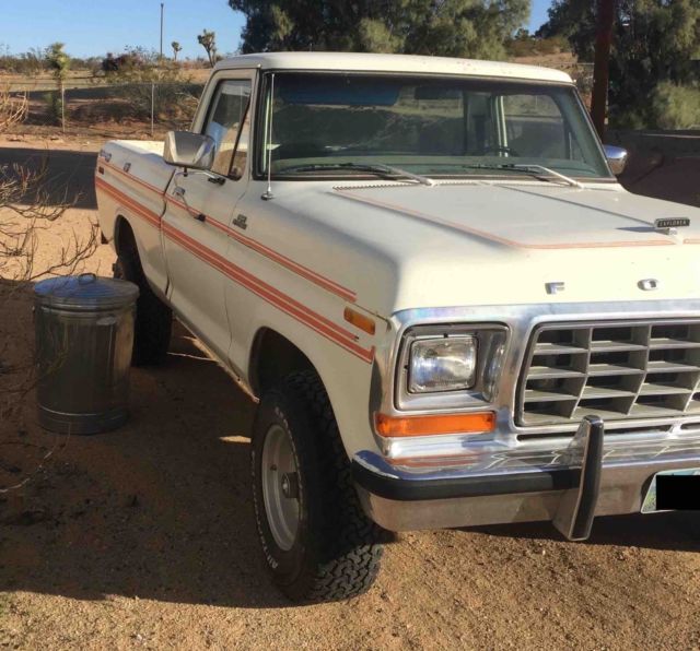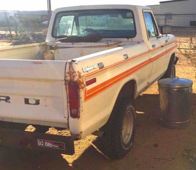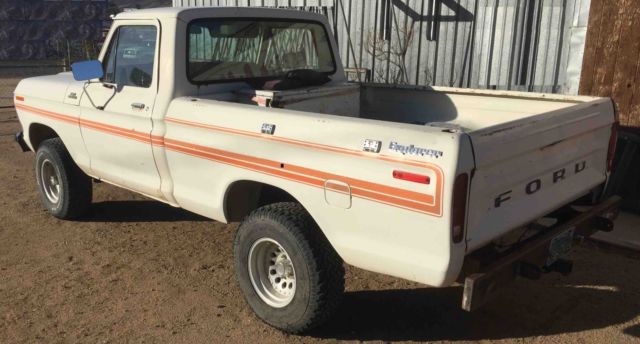 | for sale is my 1979 Ford Pick up truck. Custom Explorer model. standard cab 4x4 drive. short-bed with 351ci V-8 engine. Auto Transmission.manual locking hubs.solid truck that needs some solid work to be a reliable daily driver and/or restoration.no rust on the frame from what i can see. definitely rust on the body panels and bed as you can see in the photos.bought in Washington state from a private seller back in 2013. possible three owner truck including myself. mileage is not confirmed.currently registered and clean titled in washington state.truck is currently located in Yucca Valley,CA with me for the auction.used as a utility truck around my property.sold as is.buyer is fully responsible for shipping and transport after completing purchase please.local pick up is also available.happy to answer any and all questions about the truck to the best of my knowledge. |