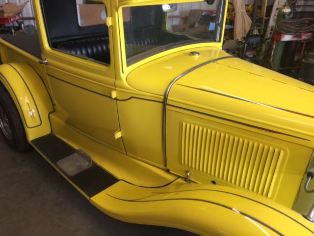 1930 Ford Model A pickup. This is a cool older vintage hotrod with a little bit of patina but needs a little bit of work to be road worthy. Has 283 Chevy V8 with 461 double hump heads and a vintage GM aluminum intake from a 1969 Z28 (part #3932472.) It has an automatic transmission, I believe it is a TH350. 1957 Chevy rear end, original Ford dropped front axle. Old school black vinyl tuck and roll interior. Stainless steel dash and firewall. Chrome window garnish moldings. Paint is pretty good and has old school pinstripes. Black vinyl sliding hard bed cover. Overall body and bed are really solid, no evidence of rust, even floor under seat is very solid and clean. Rear fenders are steel, front are fiberglass. Ansen swing brake pedal and 1940 Ford master cylinder mounted on firewall. Looks to be True-Spoke wire wheels. Split wishbones in front and a homemade rear 2-link set up with original cross spring. Custom gas tank under bed. Clean California title (currently on non-op -no back fees). Currently registered with original CA 1930 YOM (year of manufacture license plates.)Now for what it needs: needs brakes finished but most parts are included. Front backing plates have been cleaned and painted and are ready to be installed. New mater cylinder is installed and new front Bob Drake shoes, new springs, soft lines and wheel cylinders are included. New rear wheel cylinders are also included. Will need new metal lines ran from master cylinder to wheels (old brake system had moisture in lines.). It will also need the steering box mounted. A mid 50's ford truck box is included along with a steering column and Grant steering wheel that were previously installed. Fab work will be required to mount steering box to owners liking. Also both side windows are cracked/broken but new felt channels and new window regulators and window mounts are included. The previous fab work done on the frame is amateur at best and should be at least inspected closely before putting it on the road (old steering box location, rear trailing arm mounts, etc.) It has been driven like it is, but just trying to do full disclosure so there are no surprises for new owner. Truck has been sitting for a few years but engine did fire up with very little effort. Tires have a lot of tread but age is unknown. Would make a cool little truck with just a little bit of effort. $500 deposit due within 48 hours balance due in cash/wire transfer within 7 days. Truck is available for inspection. Email me with specific picture requests, but it may take a day or two to get them.
