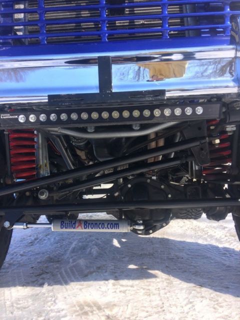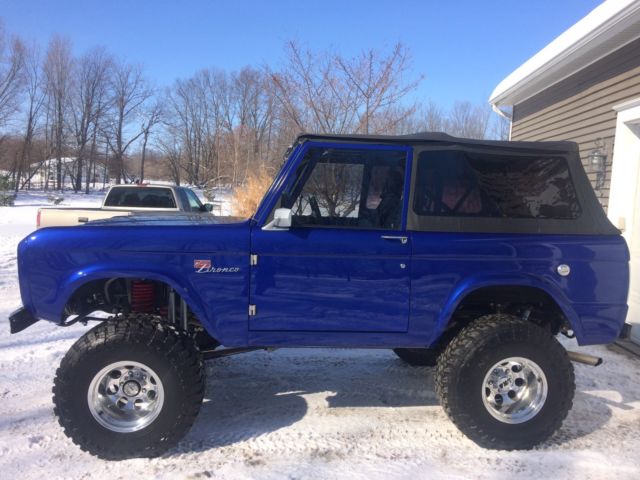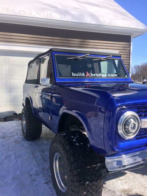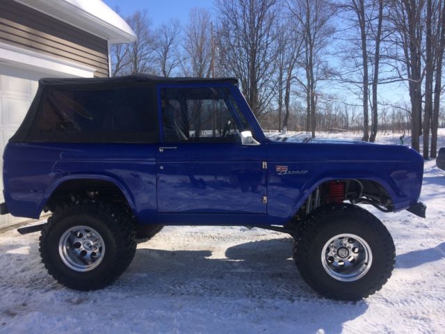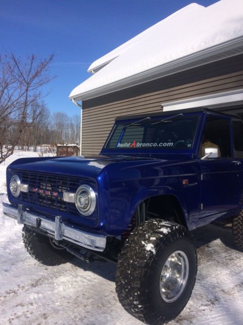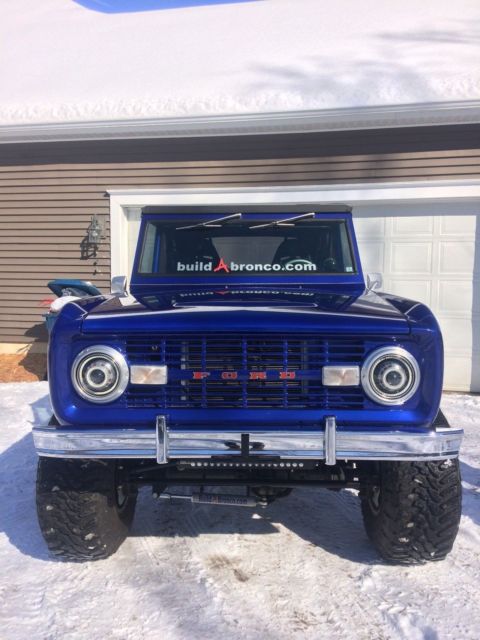 I have for sale a 1975 Ford Bronco sport, frame-off restored by the team at BuildABronco. This Truck has been my show piece for the past year and a half and it is now time to part ways to start on my next build. Almost every single body part on the truck is brand new(Yes, the doors do line up perfectly with the rear quarters). This Bronco was built to show and tow with custom options such as a fifth wheel hitch, powder coated tube frame and rear air bag suspension set up.The purchase of the vehicle also includes a paint matched set of tube doors and roadster doors. Bronco has a rebuilt 302 engine.3 speed automatic C4 trannsmissionDana 44 front end Ford 9" in the rear.Headers leading to dual exhaustNew plugs, wires and distributor.New Centech wiring harnessNew gauge cluster and custom made dash bezels9 speakers including the rear subwoofer under the seat.Steering set up by West Texas Off-road.Heim joint steering linkage.Bilstein shocks all the way around with duel shocks up front. 33x13.50x15 Toyo open country tires(4,000 miles on them)Mickey Thompson chrome wheelsPaint color is Lexus blue Interior is bed lined and has a couple different options in the rear.You can have either a back seat for passengers attached or you can also detach the seat by pulling two pins and reattach a fifth wheel hitch for pulling trailers.Front bucket seats have lumbar support and are made by corbeauCustom paint matched family roll cage with interior lighting. If you have any questions at all let me know. I will be happy to answer. |