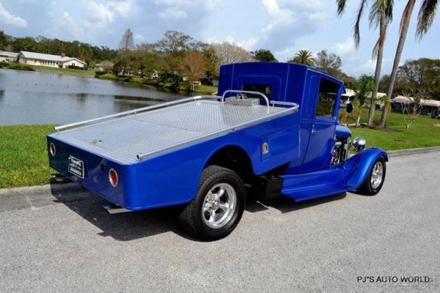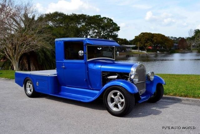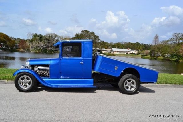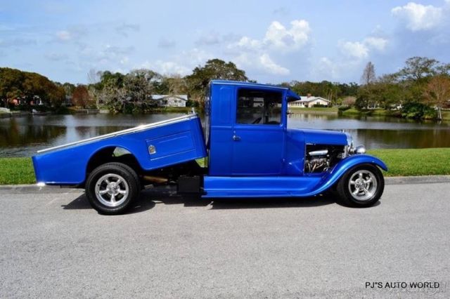 1929 Ford Model A For Sale ( 1 ton steel body and customized chassis). 5.3L V8 LS engine, 4L60E overdrive transmission, ZR2 rear end, A/C, rack and pinion power steering, independent front suspension, 4 wheel disc brakes, 15"Â Torque Thrust II style wheels, polished aluminum coil covers, custom exhaust with Flowmaster muffler, steel cab extended 3 inches, one of a kind custom built power tilt bed with electric wench, side storage compartments, Daytona blue exterior, chrome mirrors, tinted glass, custom interior with overhead console, SonyAM/FM/CD radio, Haneline white faced gauges, swing open windshield. This incredibly engendered street rod can be daily driven.