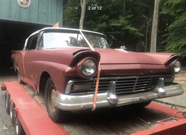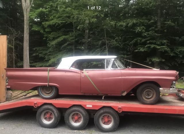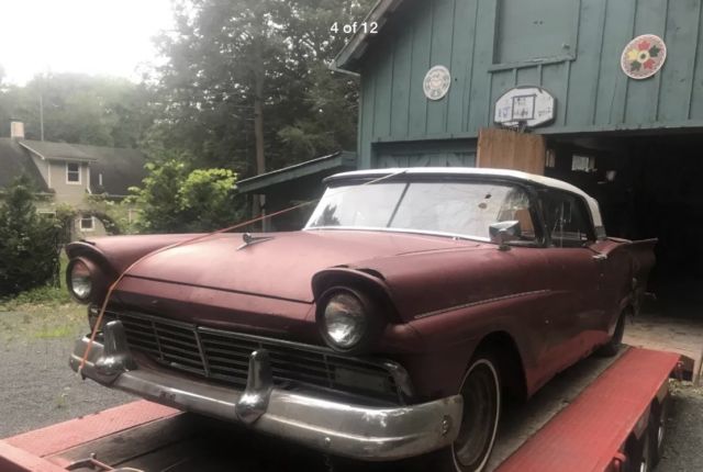 | OFFERING THIS EARLY 57 FORD FAIRLANE 500 SKYLINER RETRACTABLE HARDTOP WITH A LOW OPEN BID AND WITH NO RESERVE. CAR AVAILABLE FOR INSPECTION IN POCONO LAKE PENNSYLVANIA AND IS ON A LIFT FOR FULL ANALYTICAL VIEW. MAKE NO MISTAKE THIS CAR NEEDS TO BE COMPLETELY RESTORED HOWEVER I FEEL ITS A GOOD SOLID FOUNDATION TO START WITH. ENGINE RUNS AND IS BELIEVED TO BE A 312 Y-BLOCK- WILL NEED GLASS, FLOOR PANS AND ROCKER PANELS ALONG WITH THE OBVIOUS FROM THE PICTURES AND THE INTERIOR WILL NEED REUPOLSTERING. ALL THE RELAYS ARE IN PLACE ALONG WITH THE WIRING AND SWITCHES FOR THE TOP. I BELIEVE THE ELECTRIC MOTOR IS MISSING BUT THEY ARE AVAILABLE. THE CORRECT COLOR FOR THE CAR SHOULD BE RED WITH A WHITE TOP. GOOD LUCK |