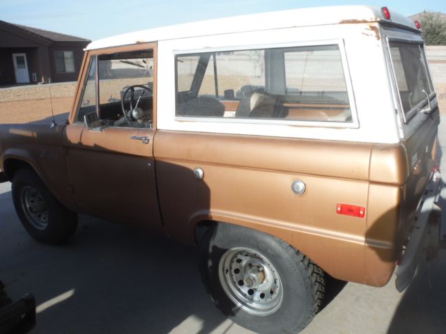 1974 BRONCO UNCUT 48,166 ORIGINAL MILES. I HAVE OWNED THE BRONCO FOR ABOUT 20 YEARS HAVE BEEN SITTING IN MY SHOP . PUT IN NEW BATTER, RAD HOSE AND FUEL PUMP TO STAR, RUNS GOO, THE REAR SEAT HAS SOME TARP TYPE MATARIAL ON IT THAT I STARTED TO PULL OFF WHEN I BOUGHT IT . I DIDNOT PULL ALL OF IT OFF BECAUSE I THOUGH IT MAY HAVE CAME FROM THE FACTORY THAT WAY BECASE SEAT LOOKED BRAND NEW UNDER IT. SO SOME MATERIAL STILL ON IT . THER THINGS THAT I KNOW ARE NOT ORIGINAL ARE TIRES AND WHEEL, MISSING THE ASH TRAY, HAS BROKEN WINDSHIELD, DENTED ACROSS FRONT GRILL AND HEAD LIGHTS, LOST ORIGINAL KEYS WILL HAVE NEW ONES MADE,HAS AM RADIO, HAS NO CARPET AND THERE IS A PEICE OF IN BY TRANSFER CASE SHIFTER, EXHAUST AND VALVE COVERS NOT ORIGINAL HAS POWER STEERING GEAR BOX BUT PUMP IS MISSING WILL HAVE TO LOOK IN OTHER BUILDINGS TO SEE IF I HAVE THE PUMP ALSO HAVE THIS LISTED LOCALLY HAVE THE RIGHT TO END AUCTION EARLY |