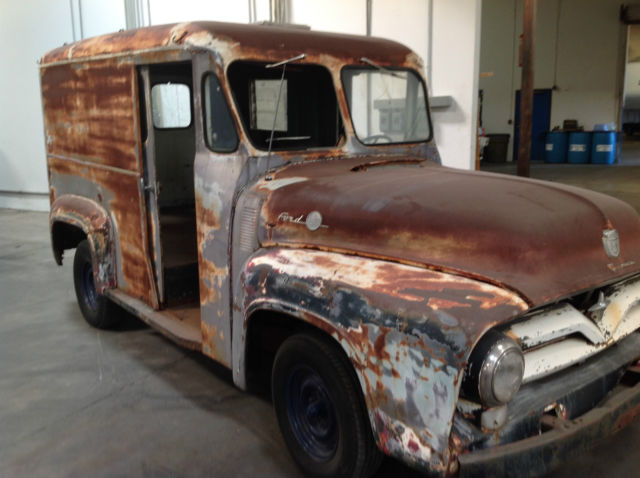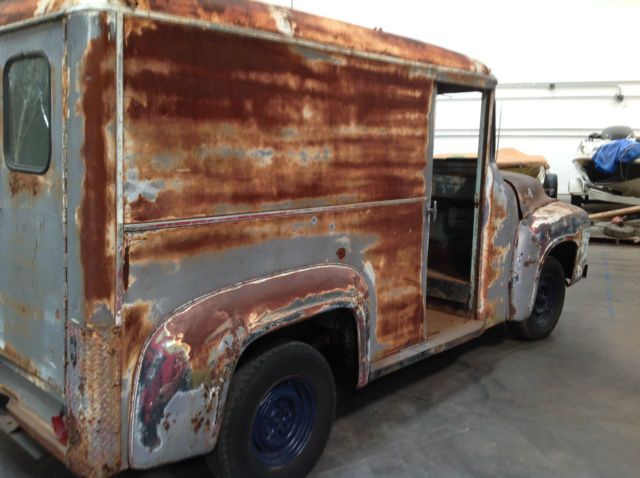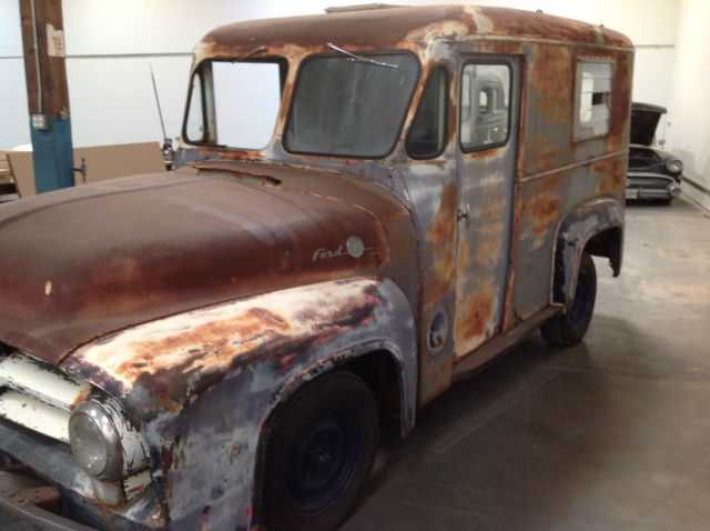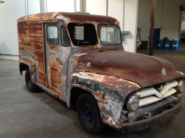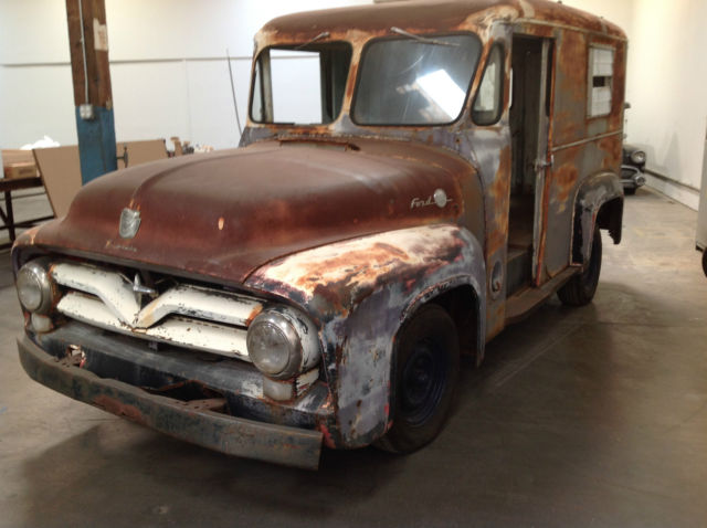 | This classic 1955 Ford F-100 1/2 Ton Bread Truck is too cool to pass up. A restoration vehicle. this baby currently does not run. 3 speed transmission (on the column) adds to its charm and functionality. The seat (one) has been re-upholstered. There is very little rust. Please review the pictures well. Call Jim (or email) with any questions (619) 920-4624. $500 due within 24 hours. Balance due within 7 days. Please arrange for your own pickup or shipping. On Feb-10-15 at 13:11:08 PST. seller added the following information:**THIS VEHICLE HAS AN AUTOMATIC TRANSMISSION |
