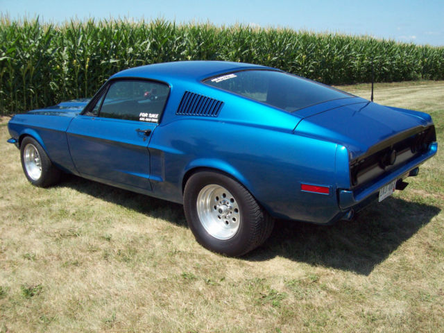 | 1968 FORD MUSTANG GT FASTBACK66. 00 miles. 351 Cleveland 4 bolt main. bored . 30". forged pistons. balanced. lifter bores sleeved for improved oil control. block decked. line honed. torque plate. honed cylinders. ARP rod bolts. Canton "road race"oil pan. 3 angle valve job. push rod guide plates and screw in studs. Crane roller rocker arms. Lunati roller tappet cam shaft . 608" lift. Doug Nash 5 speed tranny. Hooker headers. Walker Dynomax mufflers. Weiand aluminum water pump. Griffin aluminum radiator. nice "Acupuleo" Blue/laquer finish. Boss 302 frt spoiler. GT rear splash apron w/exhaust cut outs. body stripped bare metal and underneath was painted with "Imron" also including engine bay. no rust ever. Maier Racing fiberglass hood. Mustang competition handling package frt and rear sway bars. 9" Nodular iron diff. case w/Detroit Locker w/3. 25 ratio. Lakewood traction bars. Weld Racing wheels 15x7 frt. 15x8 rear. 1968 mustang is for sale locally if sold it will be pulled from Ebay |