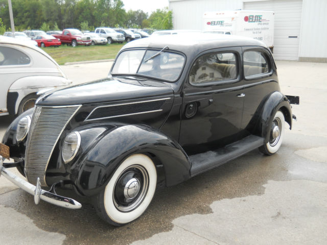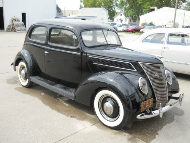 | 1937 Ford Sedan Slantback 2 dr. Flathead V8. Very solid body. Recent new paint. New tires. Needs Interior. Runs and drives. Has some new glass. Right rear glass is broken(it was a replacement). Original bumpers are rechromed. A good solid car. Needs someone to finish it. Most of the hard work is done. Paint shows very well. All pieces are there to my knowledge. Frame is nice. Drivetrain works well. Mechanical brakes. This car would make a great resto or street rod candidate. Engine is 40's vintage. I do have the 37 engine if desired. If you have questions. call 515-265-3891. |