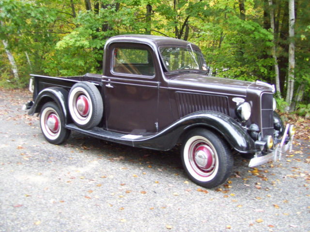 | This 1936 Ford is a survivor. a barn find. All steel. All original. Columbia 2 speed rear. manual. Flathead V-8. also original. All #'s match. appears to be original black paint. Drive this truck now. 6 volt system. Never modified. V-8 is a 21 bolt. providing 85 hp. All options that were available at the time of manufacture. swing-out windshield. flashlight holder. side mount tire. white walls. Original "Ford" scripted head lamp glass! Fog lights. bumper guards. radio. even a cigar lighter. Artillery wheels. also. as original. Appears to be black/brown two-tone. Full fenders being black. cab. bed. etc. being brown. Oklahoma truck. NO RUST. Quite a find. Correct black FULLY upholstered interior. Dual tail lamps. heater. and hinged mirrors. All you could want is here on this truck. Accessory directionals 1950's style. Not a consignment sale. nbsp; |