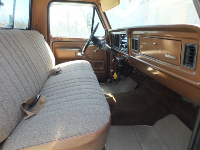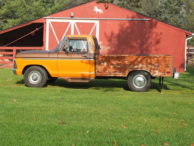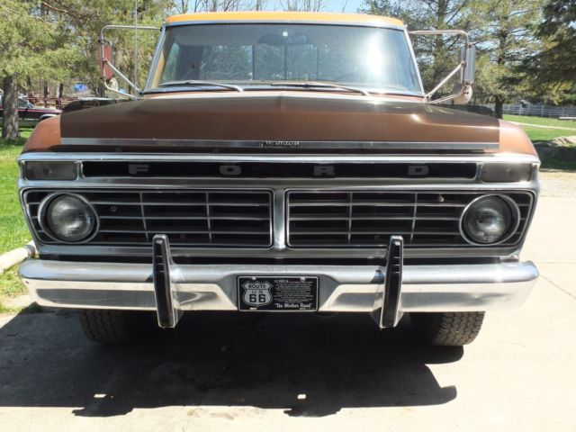 1975 F-250 Lovingly known as "Big Ugly" This is a RARE 1 owner truck with the original title issued 11/22/74 Truck was custom ordered with the Orange/Brown paint combo. Custom built oak box was put on in 1980. Box has a nice Patina, as shown in the pictures. First picture was taken last summer. New headlinerandseat re-done, both in excellent condition. New Holley Carb on a 460 CUI mean machine engine. Truck was running and driving excellent until a couple of days ago. Looks like the starter has gone out. I am moving, and don't have the time to fix it, so he needs to find a new home. Feel free to ask questions. Its a 43 year old vehicle, so its not perfect, some surface rust on the gutters, scuffs, scratches etc. No warranty expressed or implied. Sold AS-IS Funds must clear before the truck can leave. |