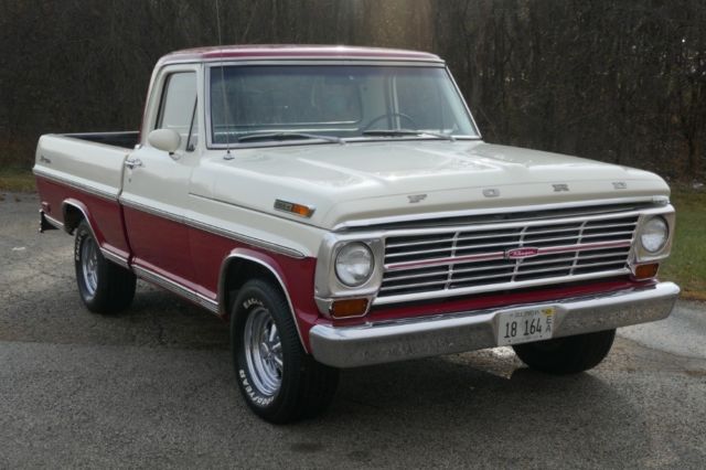 1969 Ford Ranger Pick Up Truck302 V8 Engine / Automatic TransOriginal Ford Rear - End 3:25 gear ratioPower Steering and Drum BrakesOriginal Paint Scheme Wimbledon White and Candy Apple RedLots Of New Parts! New Grille, new bumpers, door handles, wiring, and new rubberRiding on new tiresOriginal Black and White interior was reupholsteredColumn ShiftCustom audio sound AM/ FM with Aux This is a clean North Carolina Pick Up ready to jump in and enjoyLocated here in our showroom- Come in and... check it outWE FINANCE/ DELIVER AND SHIP WORLD WIDE |