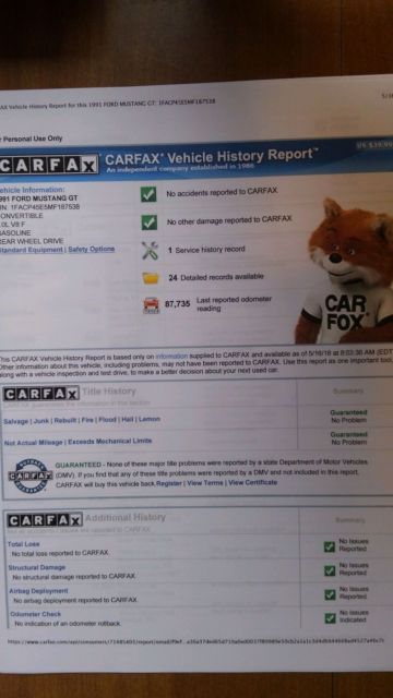 1991 mustang GT convertible. 5.0, 5spd, 87,000 original miles, no accidents, no rust. Top works and does not leak, Cobra grill, cobra r wheels, stainless h-pipe(no cats), stainless flowmaster American thunder cat back exhaust. Ram air hood. Hurst shifter, 355 gears, cold air intake. Engine is original and completely stock. No dings or dents, no Bondo, Repainted single stage black . I've owed the car for ten years.Very solid car, interior and exterior in very good shape, but not a show car. Questions, Jeff 570241thirteen01