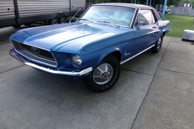Up for auction is a good looking 1968 mustang stock 302 ci. with new 600cfm edelbrock carb. Car sat for some time, I don't know how long. It wasn't running or rolling when I got it. after a couple of months I installed new:600 cfm edelbrock carburetor 12.rear brake drums (2)starter 13.rear brake lines (2)solenoid relay 14.rear brake shoes and springs etc.coil 15.front passenger side brake shoes and hardwarespark plugs 16.driver side brakes and springs looked goodspark plug wires 17. new front passenger side brake hose and brake linebattery fuel pumpfuel tankfuel linesfuel filterCar starts right up.carburetor needs electric choke hooked up. Brakes need to be finished and I am including all of the brake lines necessaryto do the job. Also including remaining brake hardware with shoes and wheel cylinder for the driver side front. The car will not stop right now !!The title is clean and is the name of the person I bought it from with the price I bought it for.you can also see a video of it running on you tube. Search for- 1968 blue mustang tn. 302 running .