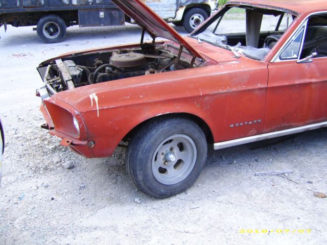 1967 FORD MUSTANG COUPE,STRAIGHT 6-CYL, 3-SPEED MANUAL SHIFT. LOOKS TO BE ALL ORIGNAL. HAVE NOT CHECKED ANY NUMBERS. WILL NEED A NEW TOP, IT MIGHT BE POPPED OUT, BECAUSE THERE ARE NO CREASES. TREE LIMB FEEL ON TOP,BROKE WINDSHIELD OUT, ALL OTHER GLASS GOOD. WILL NEED A NEW DASH CAP. HAVE NOT CHECKED THE TRUNK YET, WILL HAVE TO FIND THE KEY. WILL ADD MORE PICTURES LATER. CAR NEEDS COMPLETE RESTORATION. NO SHIPPING, PICKUP ONLY. LOWER 48 ONLY. HAVE CLEAR TITLE. HAVE NOT TRIED TO START. |