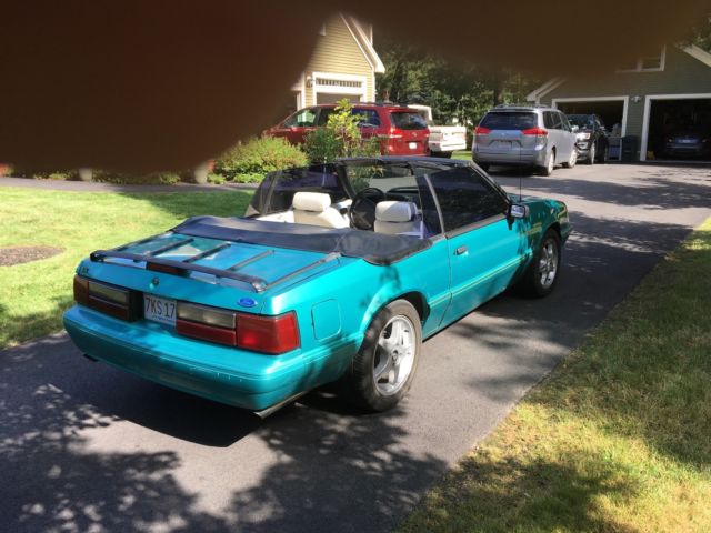 I am selling my 1992 mustang. I have owned the car for three years. I am the third owner and I work with the two previous owners. The car has always been garage kept and has never seen a winter. The car has it's original paint, and has NO rust on the underside. The leather interior is sun beat and could use a refresh(drivers seat), or throw on some seat covers for a cheap quick fix. The car runs and drives nice and has always been adult owned. It has new tires, new battery, new convertible top and new exhaust, from the mufflers back. The engine is stock except for K&N fresh air system, headers, and flow master mufflers. The suspension has been upgraded with Steeda and Tokico performance parts. The radio is around five years old, installed byprevious owner. It has a Kennwood removable face with remote and AUX/USB for your phone or Ipod, a Sony equalizer, a Bass box, and Amplifiers in the trunk(sounds nice). I have a binder with all original paperwork, key tags, and receipts. The A/C in the car does not work,probably needs a recharge. Icurrently own nine cars and am doing some consolidation. Too many cars and not enough time to enjoy them all. I will be listing my 1972 Mercedes SL350 hardtop/convertible with in the next couple of days as well.If you have any questions please don'thesitate to ask. Thanks for looking and happy bidding.