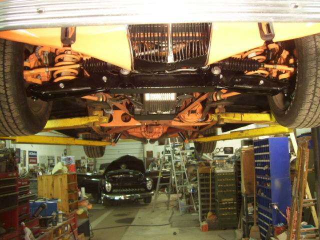 | This is a 1936 Ford Roadster Cabriolet with a removable hard top. Duvall windshield. cd. steel hood and nose. Genie shifter. Mustang ii front. 9" rear 350/350 auto. fast. Over 75. 00. 00 in this build. Leather interior including power seats! This car is fast and ready. Some images may appear pink. But this car is peach. |